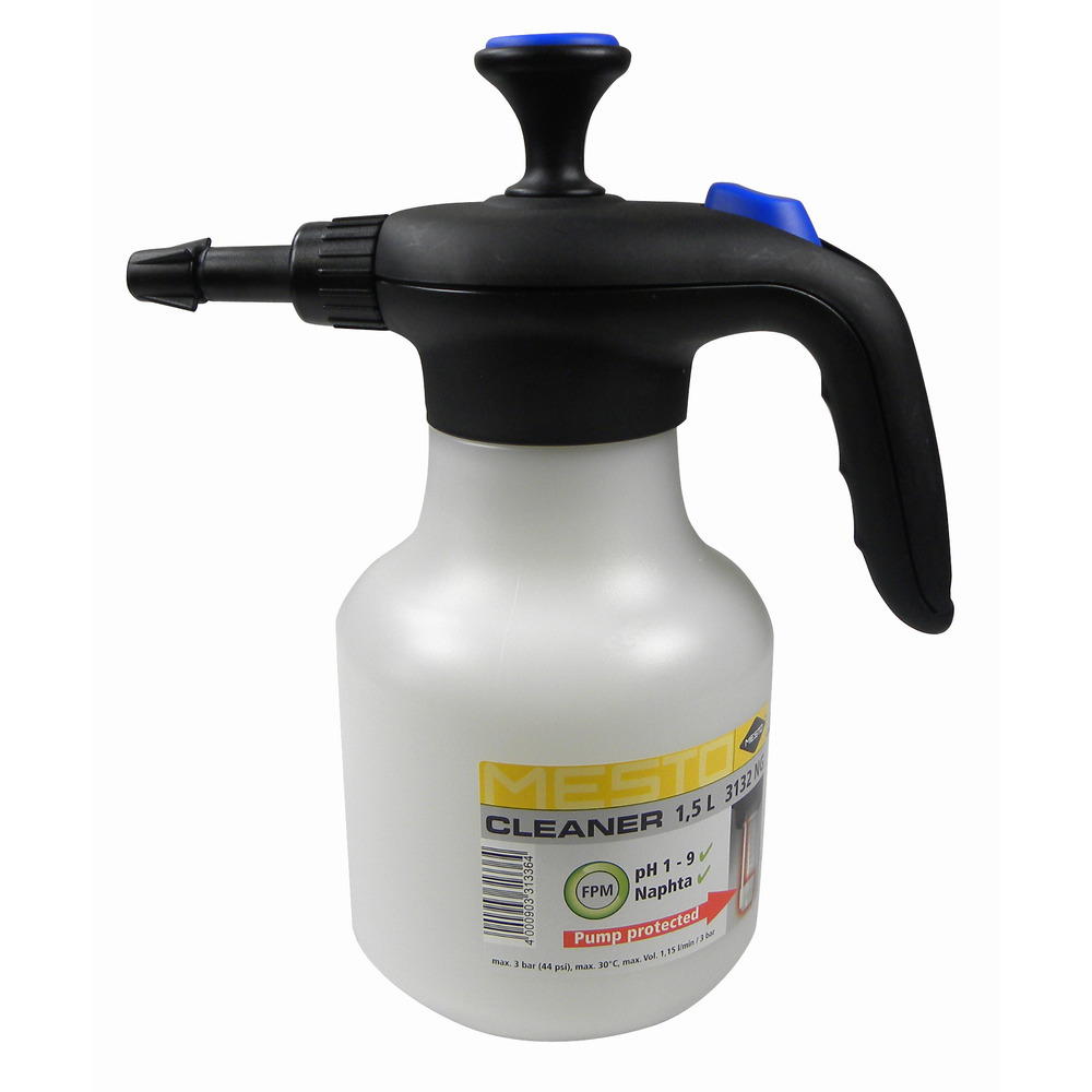 Profi Handzerstäuber mit 1,5 L Inhalt, Kunststoffbehälter mit Füllskala, Dichtungen aus FPM (Viton) für Mittel in einem Bereich von ph 1-9, Nylonpumpe. Gute Kurzzeit-Beständigkeit gegen die meisten Bremsenreiniger.