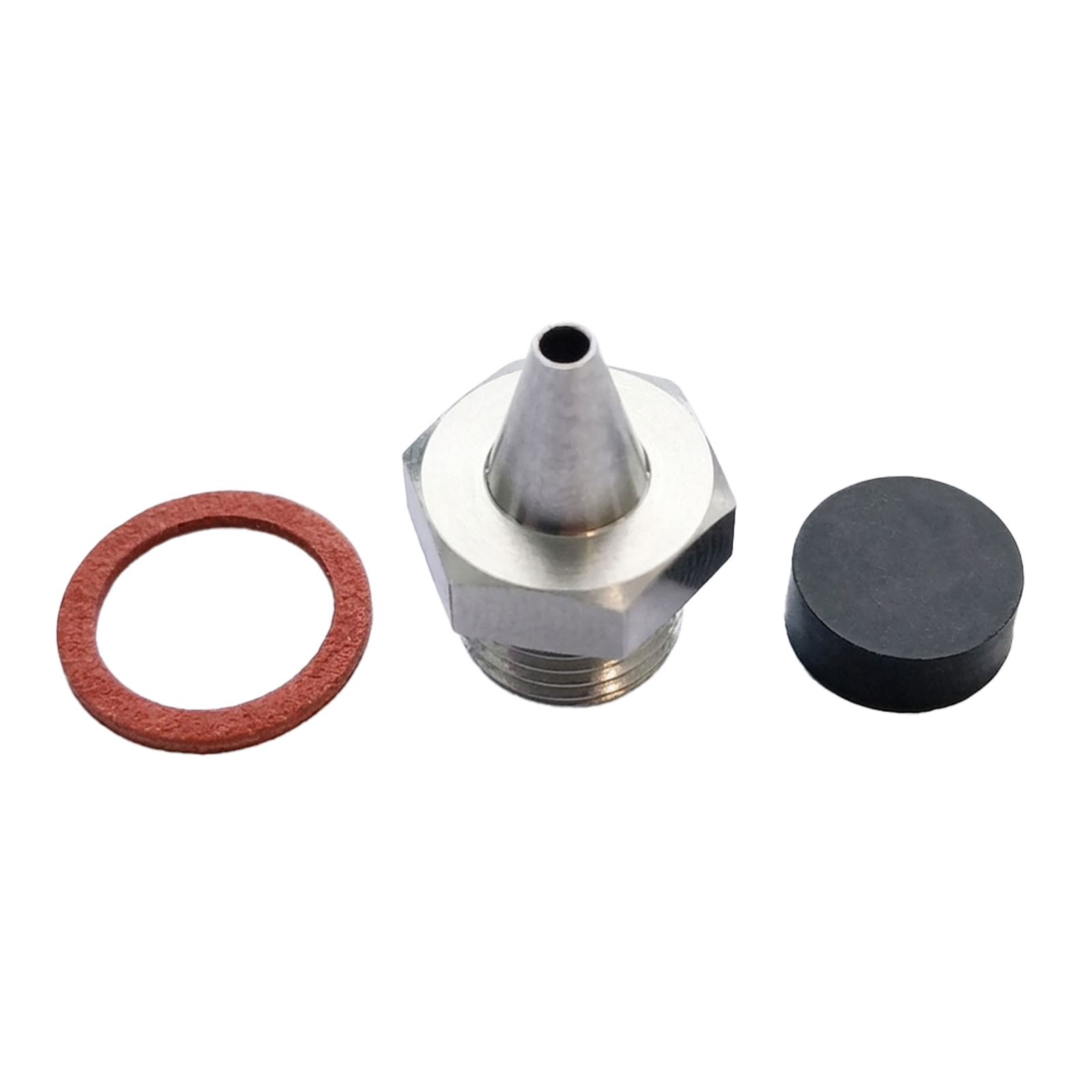 bestehend aus Edelstahl-Düse ​2 mm (3-5 bar), Düsen-Flachdichtung und Gummidichtung. Passend zu Tränkebecken Lister SB112 / 113 / TW30 HD.