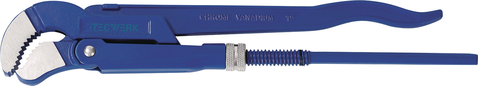 Hochwertige Rohrzange aus Chrom-Vanadium-Stahl,gesenkgeschmiedet, blau lackiert, poliert, Stellmutternsicherung, Zangenmaul induktiv gehärtet.