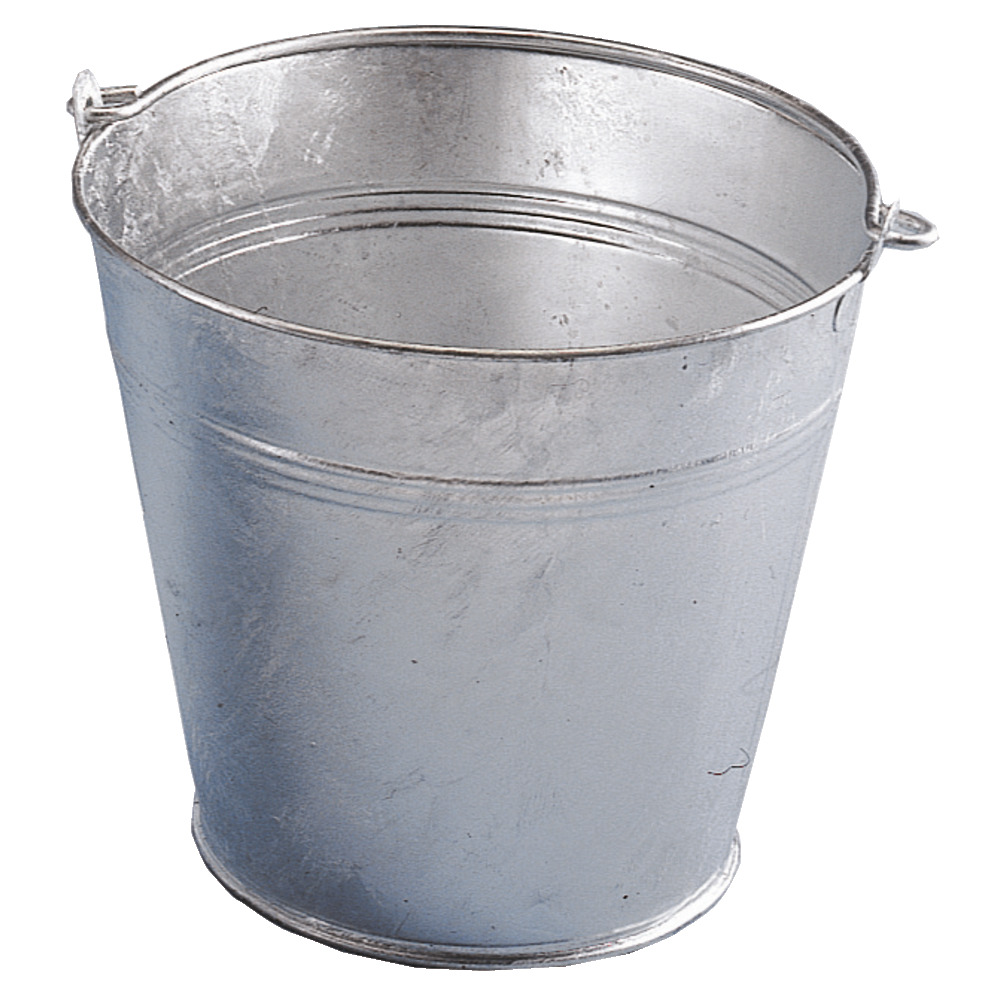 Aus verzinktem Stahlblech, konisch, Ø 33/32 cm, Höhe 28 cm, mit Tragebügel, 15 Liter Inhalt