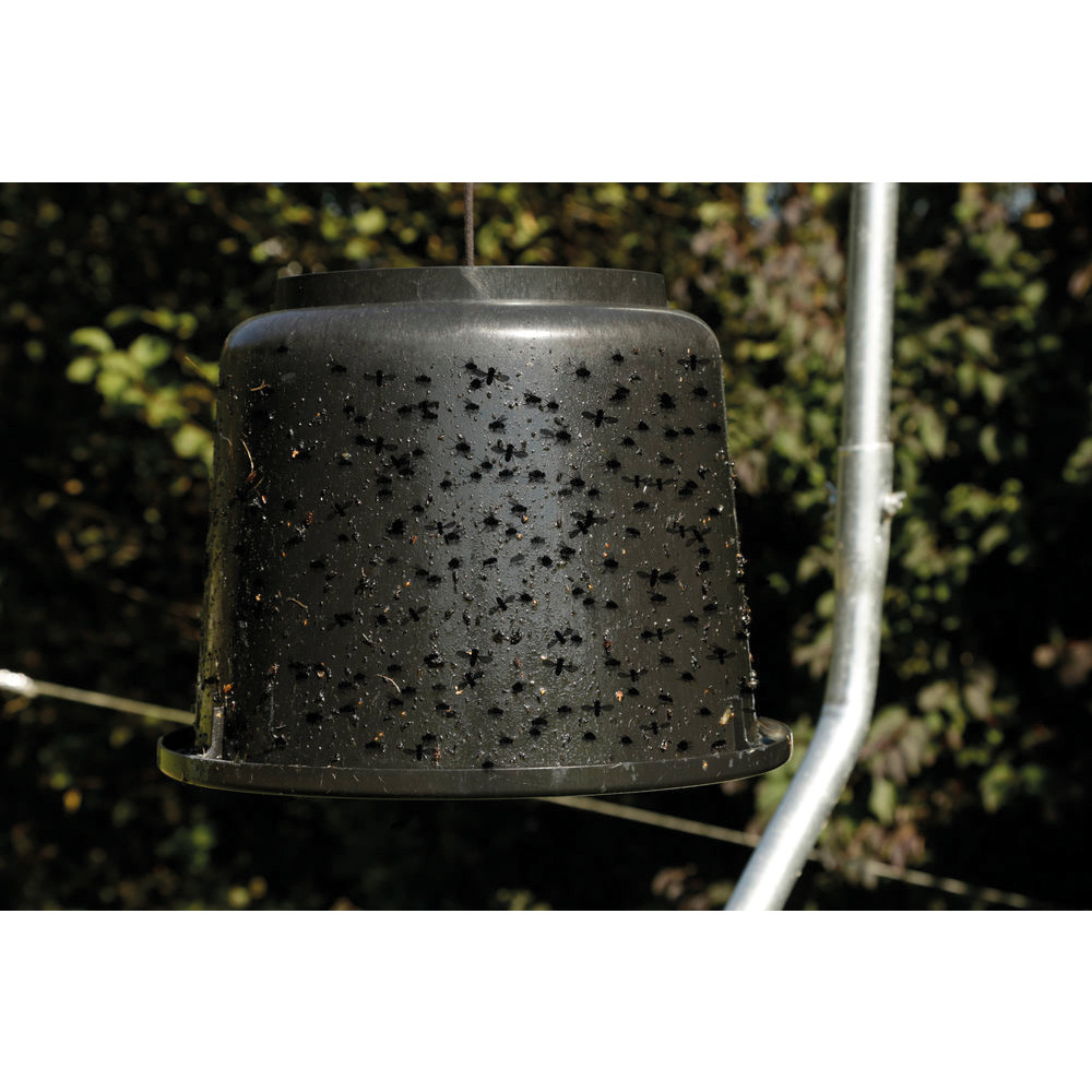 Eimerfalle komplett mit Aufhängestrick und Karabiner zum Befestigen an Bäumen, Dachvorsprüngen, Holzpfählen etc.Wird mit dem Bremsenleim (Best.Nr. 109903) deckend bestrichen und schon hat man eine preisgünstige Klebefalle. Wenn der Eimer vollgeklebt ist, einfach eine neue Schickt Bremsenleim überpinseln.Funktioniert ohne Insektizide! Wetter- und regenbeständig bis 5 Monate.