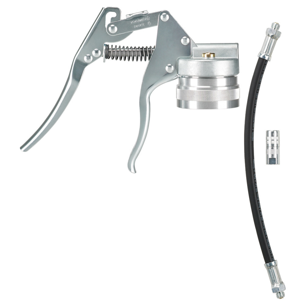 Abschmieren ohne Festhalten der Kupplung! Absolut sicher und sauber - Nie wieder verschmierte Abschmierstellen oder Fettverlust. Das spart Zeit und Geld. Ankuppeln, loslassen und arbeiten ohne festzuhalten! Anschlussgewinde M10x1
