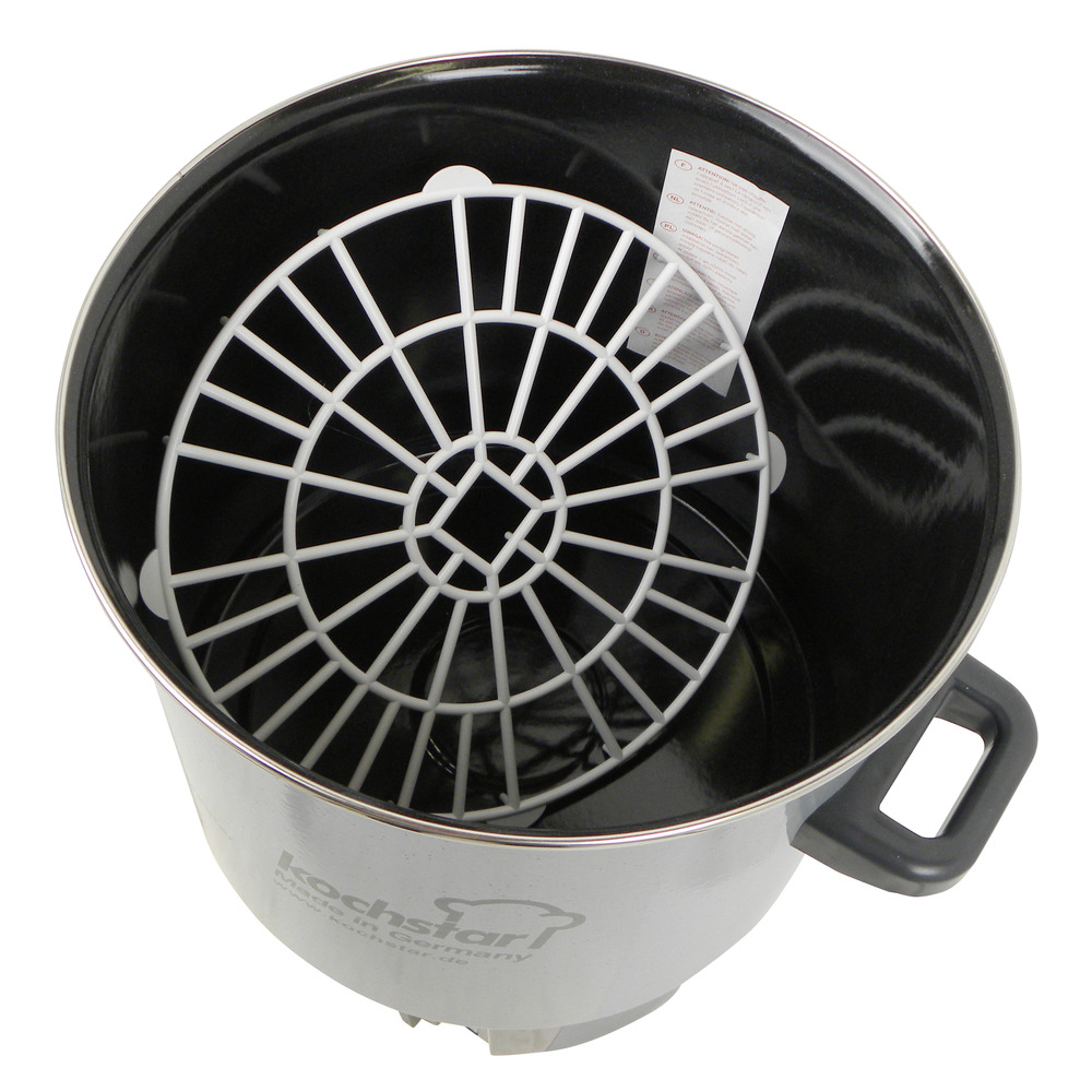 Der Einkocher ist ebenfalls hervorragend geeignet zum Kochen und Warmhalten von Suppen und Eintöpfen, am besten in Verbindung mit dem Simmereinsatz bzw. Suppeneinsatz. Die Suppe oder Eintopf wird im Wasserbad erhitzt und nichts kann anbrennen. Der Automat ist dauerhaft säurefest emailliert.