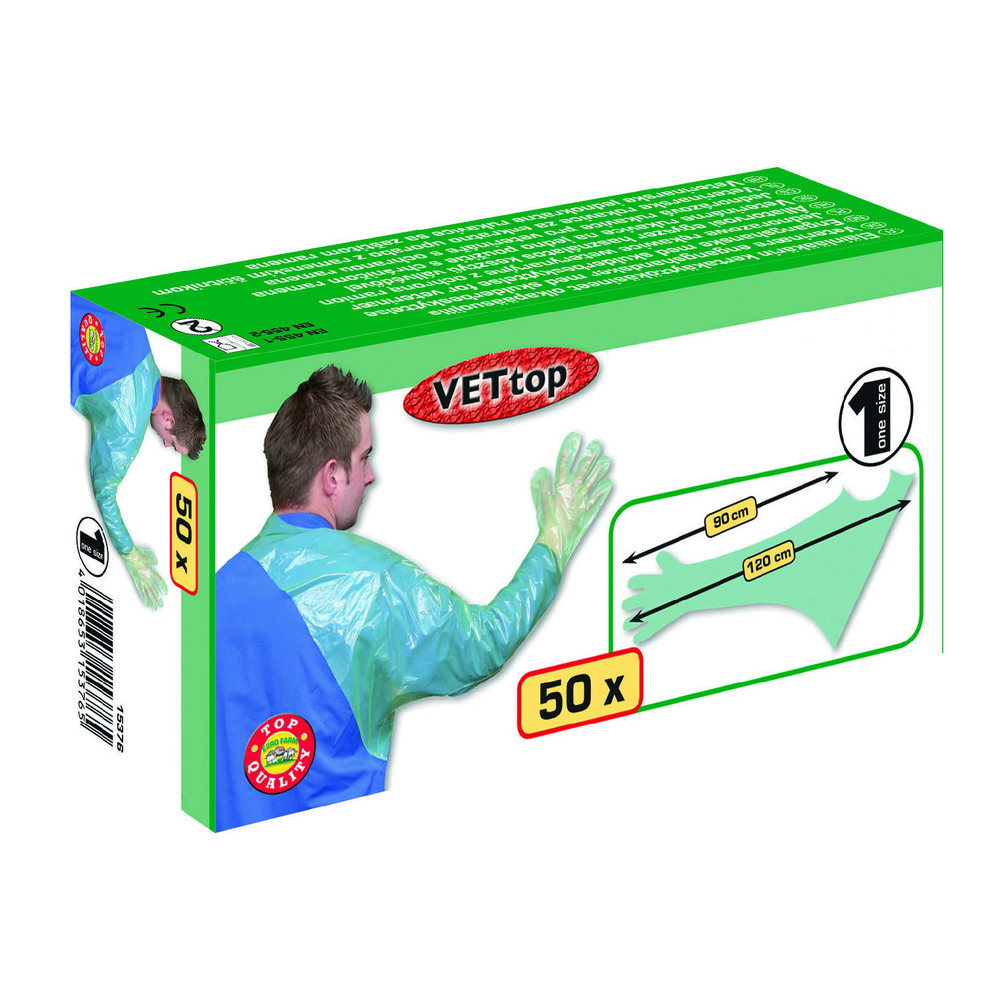 Ideal für den Veterinär, selbsthaltend, 120 cm lang, supersensibel, Materialstärke 25 micron = 0,025 mm. Lebensmittelecht, Einheitsgröße, zu 50 Stück im Spenderkarton.