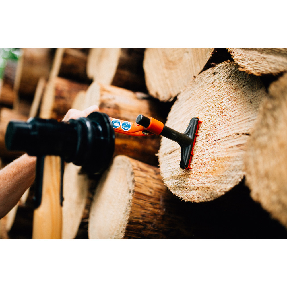 Einschlagwerkzeug für Wertholzklammern, drehbarer Handgriff mit integriertem Shock-Absorber für bestmögliche Platzierung und weniger Vibration bei der Arbeit, mit jedem Hammer oder Axt verwendbar, nur ein kräftiger Schlag erhält die maximale Qualität Ihrer Wertholzstämme.