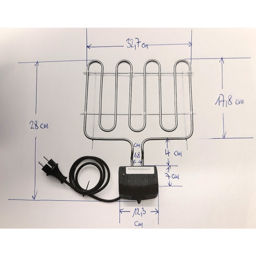 Für Fisch-Räucheröfen, 2300 W, regelbar.Abmessung Heizspirale Breite 32,7cm, Tiefe 17,8 cmFür Peetz Räucherofen