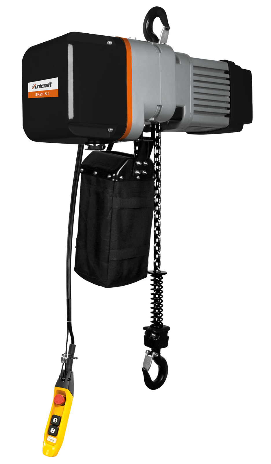 Universell einsetzbarer Kettenzug mit Siemens Elektrik und idealem Preis – Leistungsverhältnis. Mit einer Hubgeschwindigkeit und einer Tragkraft von 500 kg. Aufhängung mittels Traghaken, Überlastsicherung durch Rutschkupplung. Inklusive Kettenspeicher, integriertem Endabschalter und Bedienflasche zur optionalen Aufrüstung mit Elektro Fahrwerk.