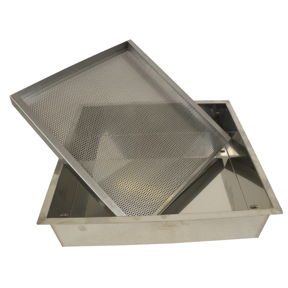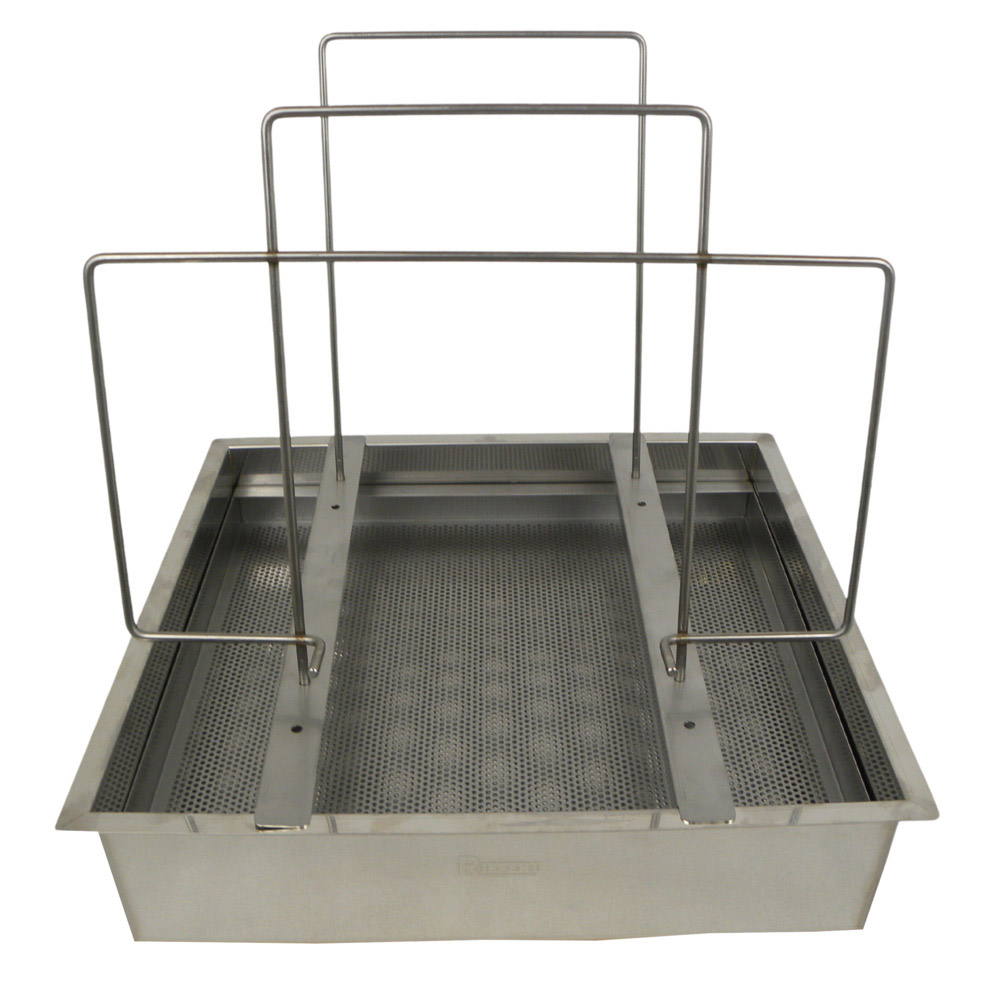 Dieses hochwertig verarbeitete Entdeckelungsgestell aus Edelstahl bietet zusätzlich eine praktische Rähmchenablage. Je nach Platzbedarf können das Gestell und die Rähmchenablage in unterschiedlichen Abständen montiert werden. So können auch mehrere fertig entdeckelte Rähmchen über dem eingebauten Sieb ohne Honigverluste zwischengelagert werden. Entdeckelungswachs kann einfach über dem Sieb abgestiffen werden. Damit trennt sich der Honig ganz automatisch von groben Wachsresten.
