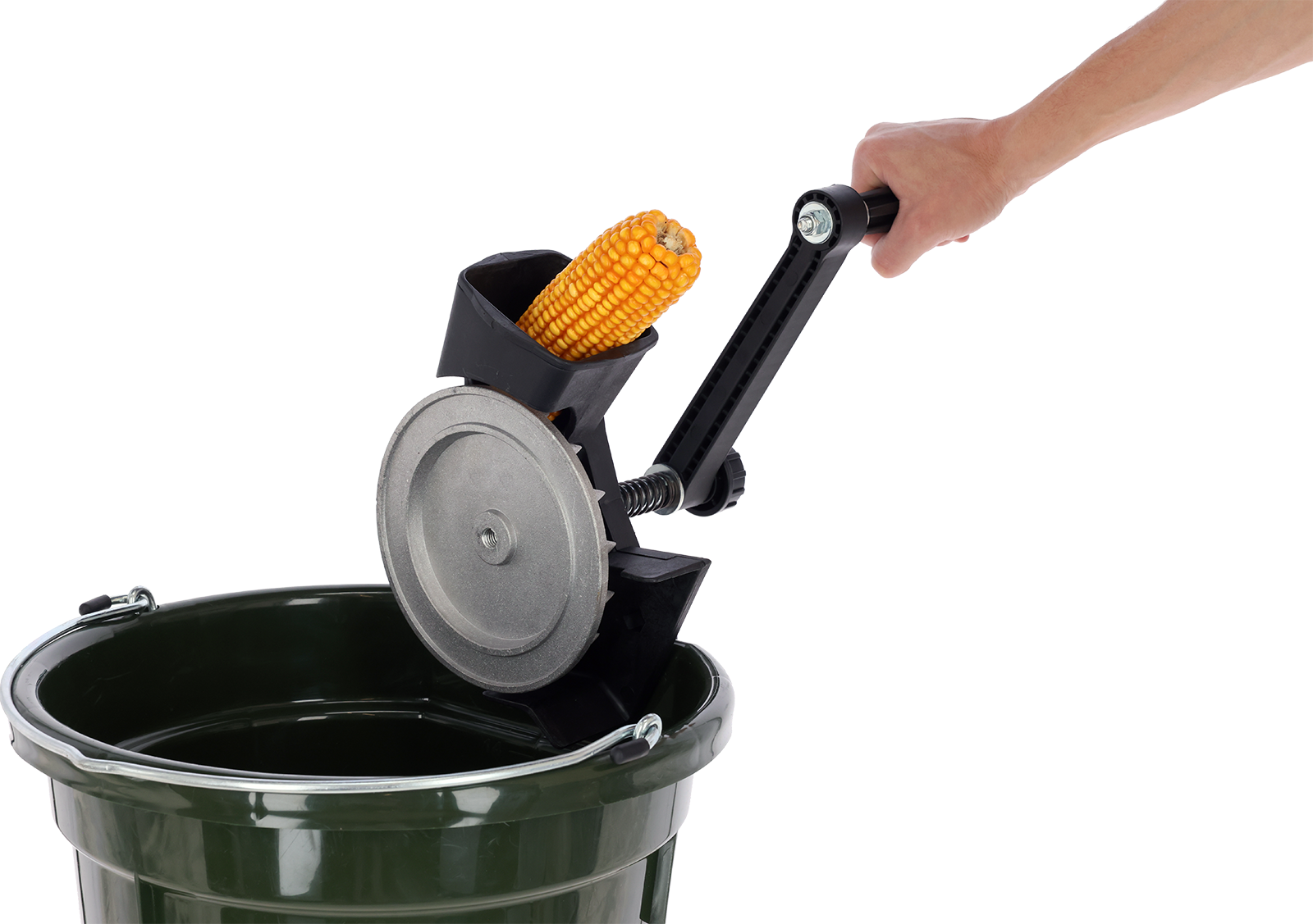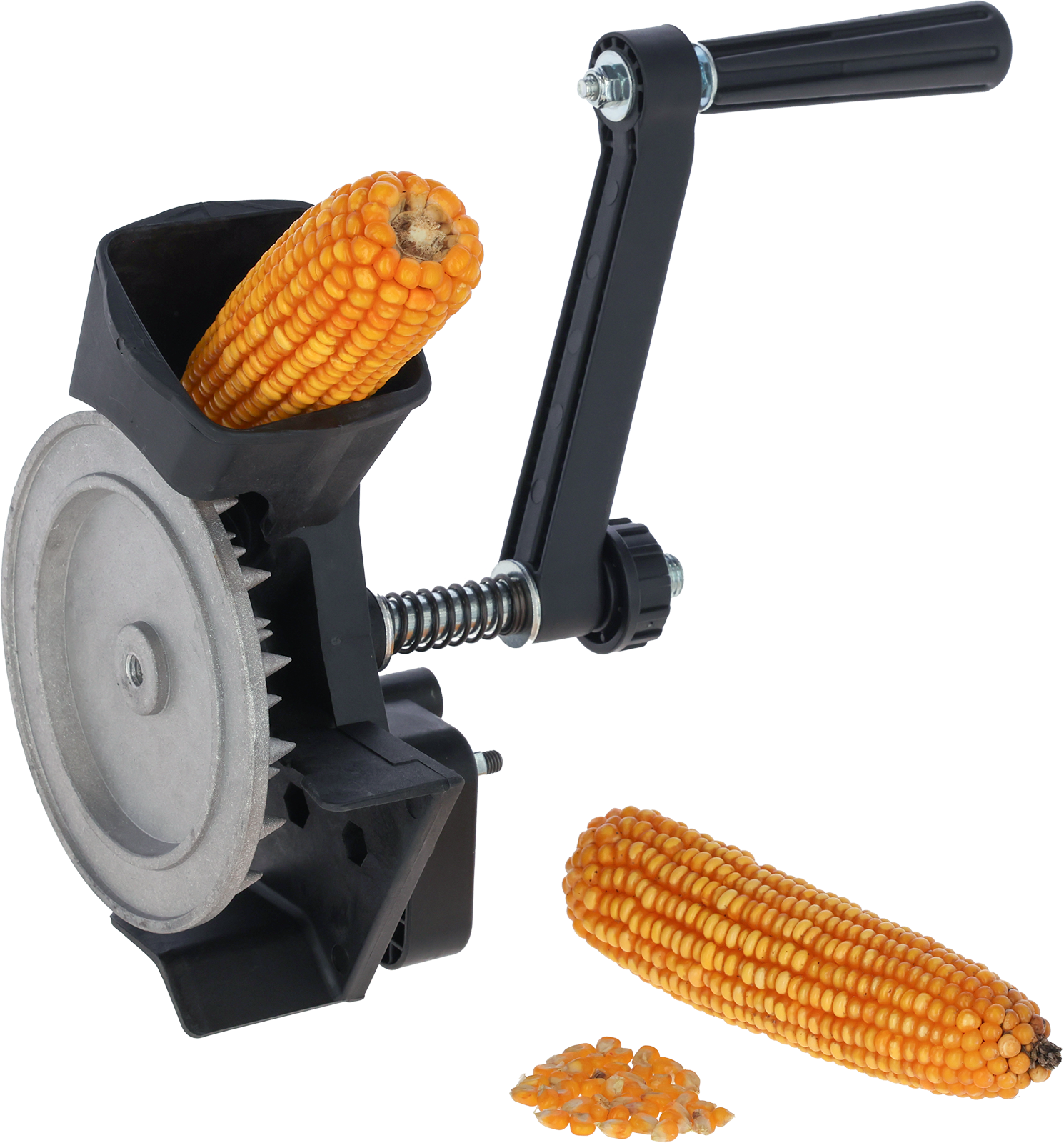 - Anpressdruck mittels verstellbarer Feder an die Maiskolbengröße anpassbar