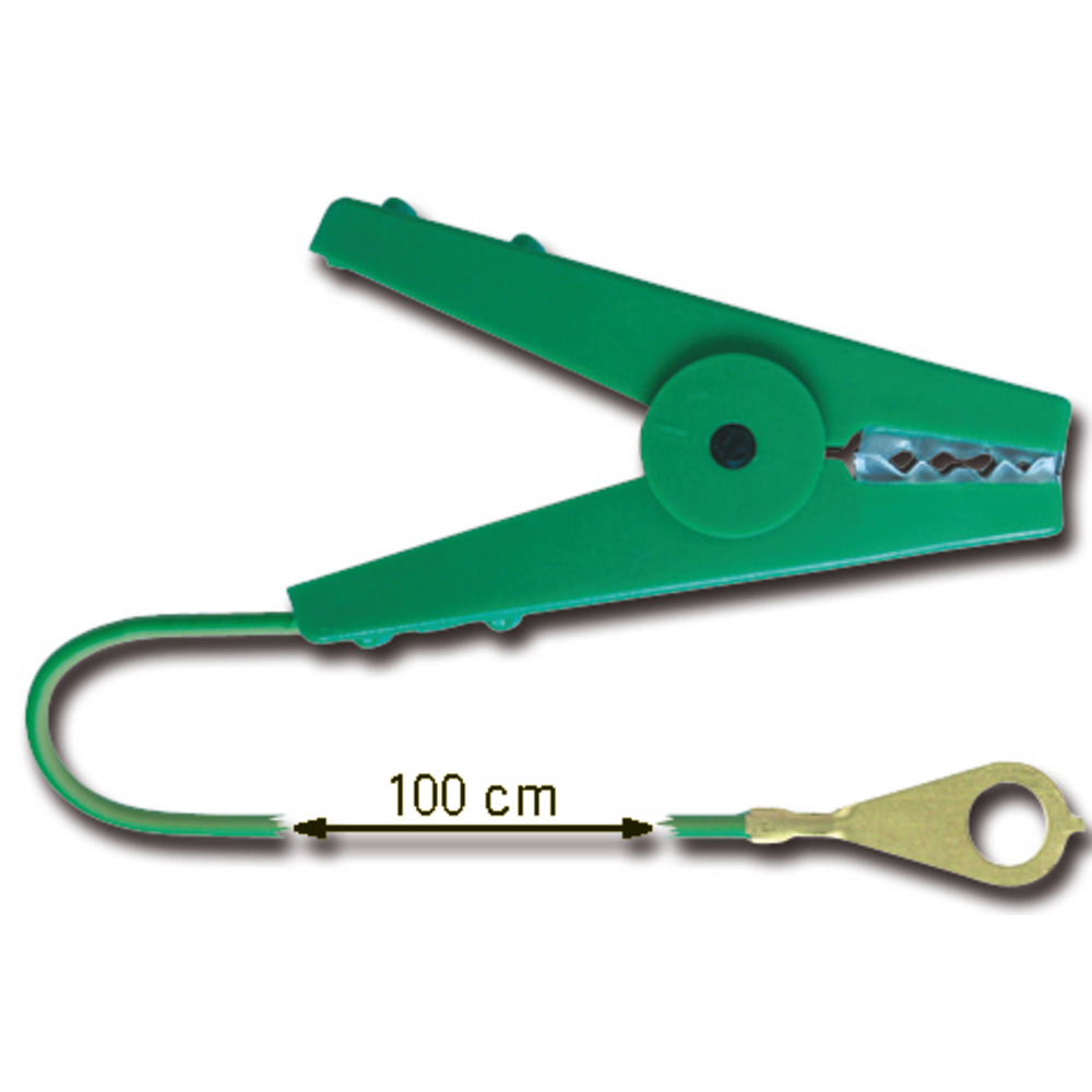 Mit robuster Krokodilklemme und geschlossener Öse. Kabellänge 100 cm.