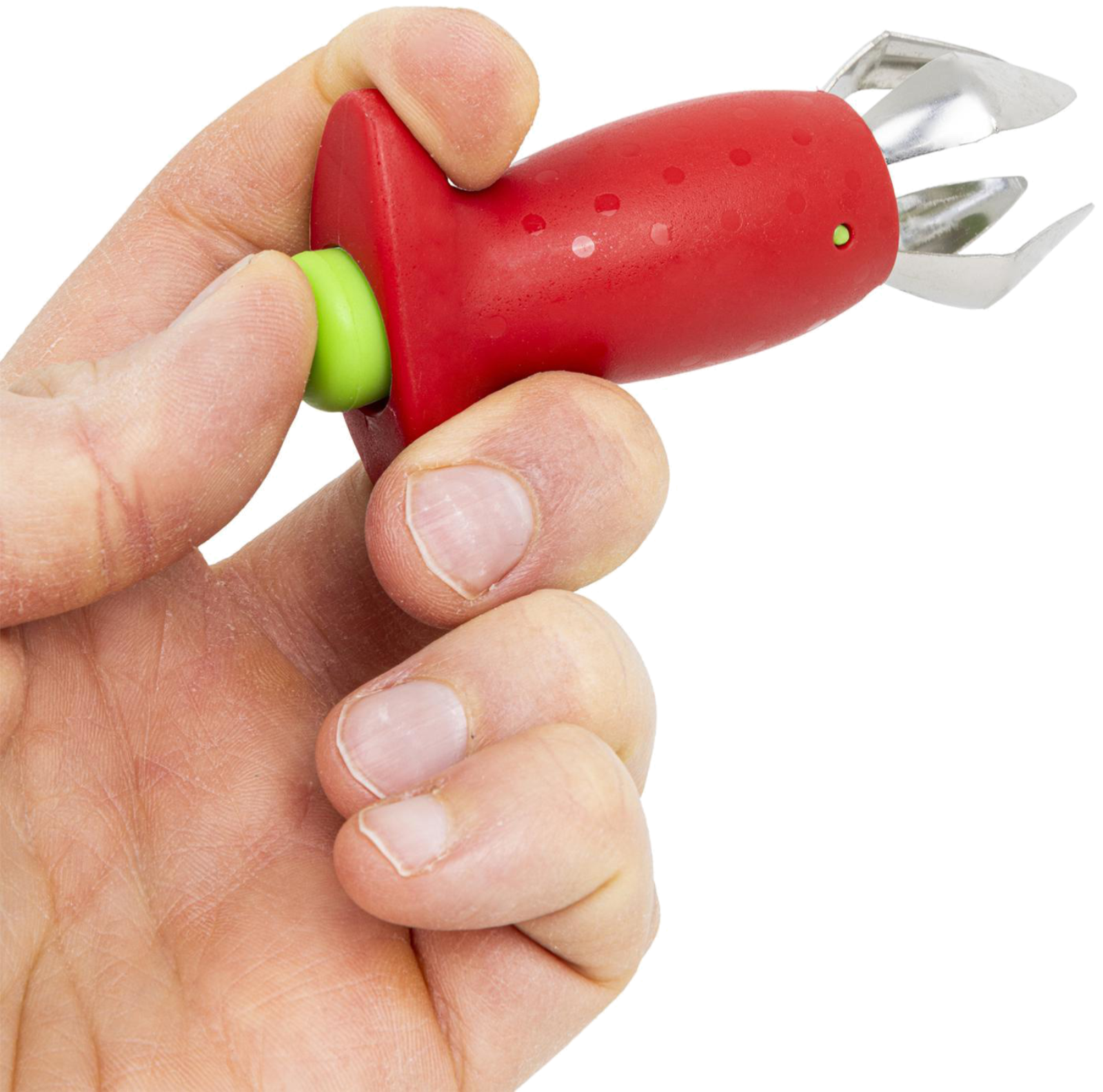 Sauberes Ergebnis: Entferne den Strunk und die Blätter, ohne dabei wertvolles Fruchtfleisch zu verschwenden. Ideal für Obstsalate, Tortendekorationen oder zum Einkochen von Marmelade.