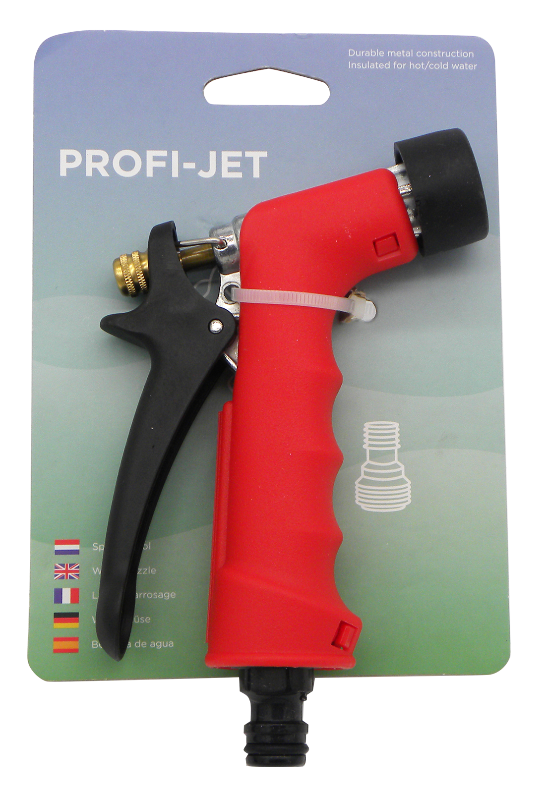 Die Euterbrause Profi-Jet rot ist eine robuste Wasserpistole mit verstellbarem Wasserstrahl für die Euterreinigung. Sie eignet sich sowohl für kaltes als auch für heißes Wasser. Die Euterbrause besteht aus einem Metallgehäuse mit Messingventil, einer Gummischutzkappe und einer Edelstahlfeder. Zusätzlich verfügt sie über eine Hebelfixierung zum Dauersprühen und einer selbstregulierenden Antitropf-Dichtung. Mit 1/2 Zoll Schlauchanschluss
