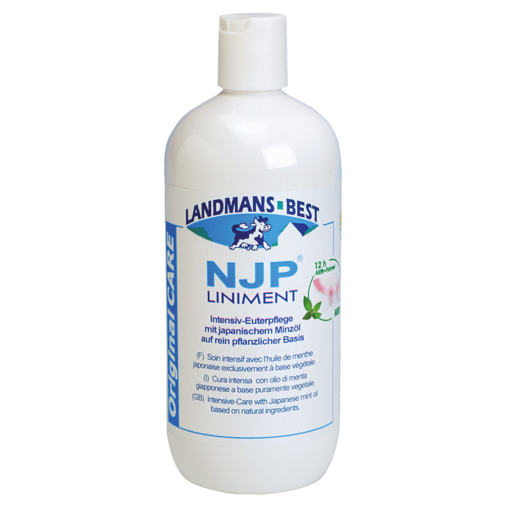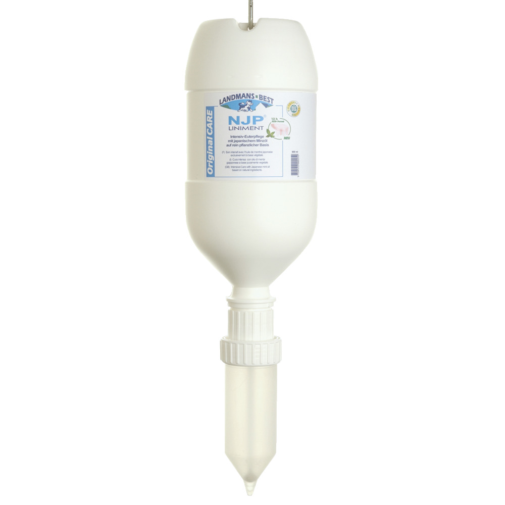 Hochwertiges Euterpflegemittel mit japanischem Pfefferminzöl in pharmazeutischer Qualität und wertvollen Pflegesubstanzen. Aktiviert bei hoher Belastung die natürliche Widerstandskraft strapazierter Euter. Das beanspruchte Eutergewebe wird durch die spezielle Aktiv-Formel lang anhaltend geschützt. Original NJP Liniment unterliegt keiner Wartezeit und hat das DLG-Gütezeichen. InfoXgen gelistet - für Biobetriebe geeignet! (Wird ohne Zitze geliefert!)