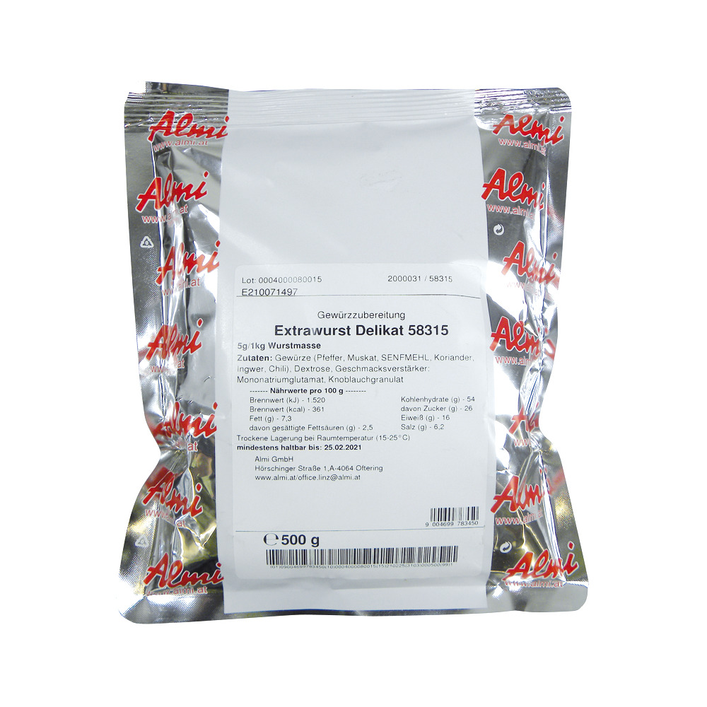 Qualität von höchster Güte, aromageschützt verpackt. Hochwertige Rohstoffe sind die Basis für erstklassige Produktqualität.0,5 kg, 5 g/kg Wurstmasse.