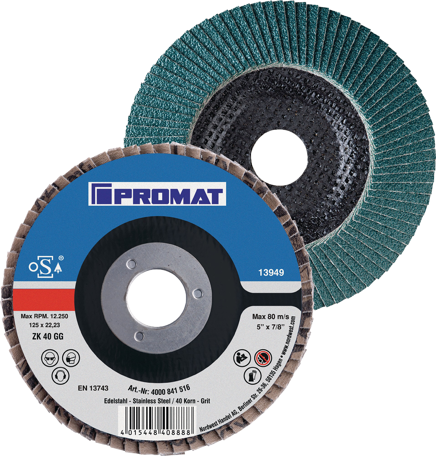 Produktinformationen "Fächerscheibe Ø 125 mm Körnung 60 gekröpft INOX"