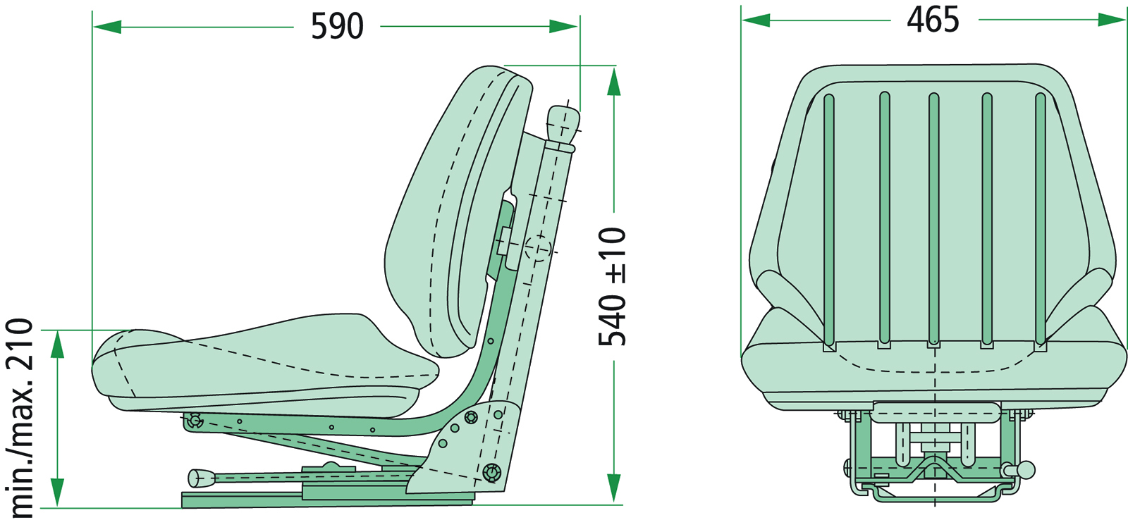 Mechanisch gefederter Fahrersitz – robust und vielseitig einsetzbar. Dieser Fahrersitz ist mit einer mechanischen Vertikalfederung ausgestattet und bietet durch den integrierten hydraulischen Dämpfer spürbaren Komfort. Er eignet sich ideal für Traktoren, Baumaschinen oder andere Arbeitsfahrzeuge. Die Federung gleicht Stöße zuverlässig aus und schont so Rücken und Gelenke.