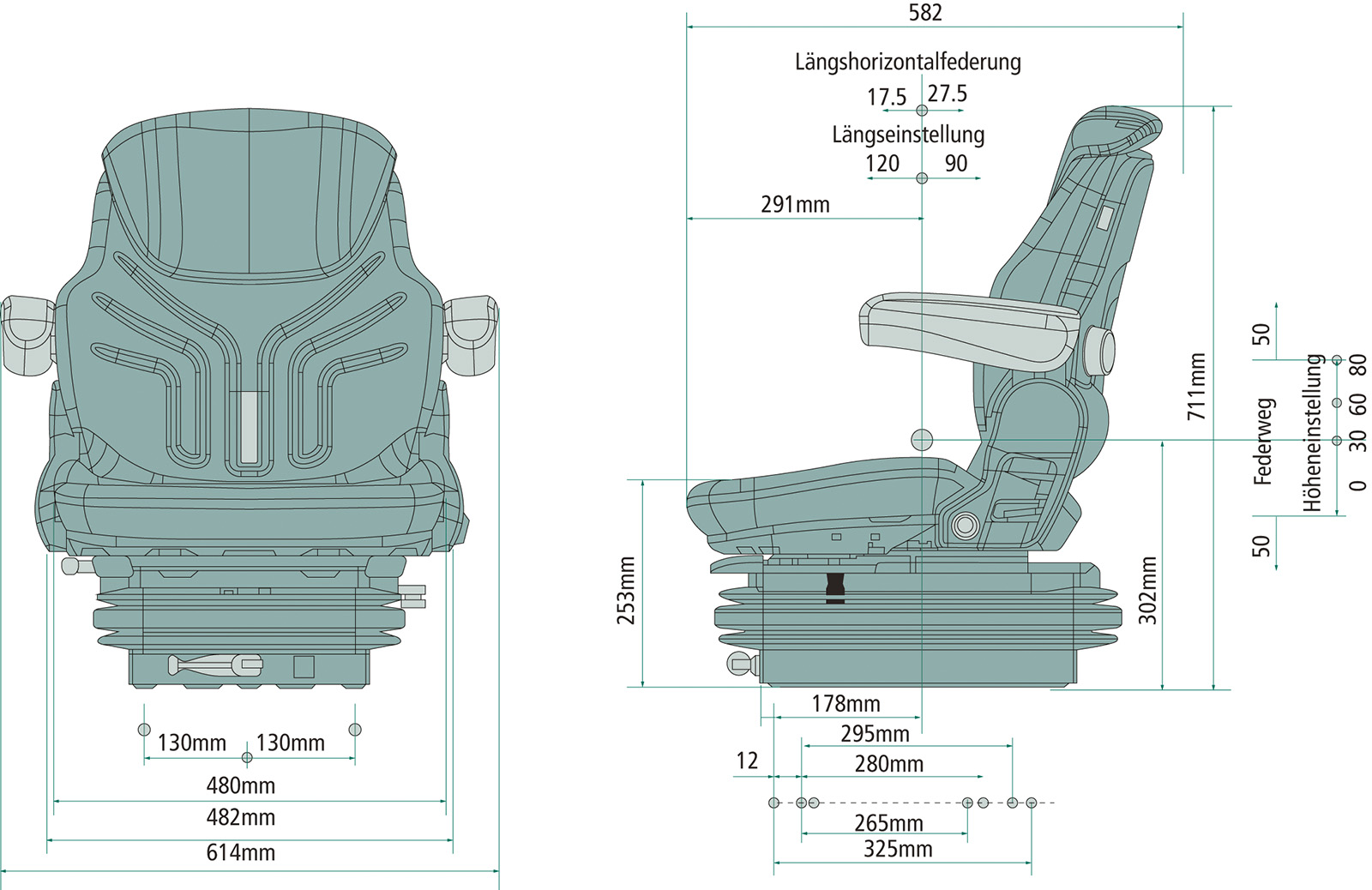 Komfort-Fahrersitz mit Scherenfederung und Stoffbezug. Dieser mechanisch gefederte Fahrersitz wurde für den täglichen Einsatz entwickelt. Die stabile Scherenfederung in Kombination mit einem hydraulischen Dämpfer sorgt für eine angenehme Fahrt auf unebenem Untergrund. Er reduziert Vibrationen und schont Rücken und Gelenke.