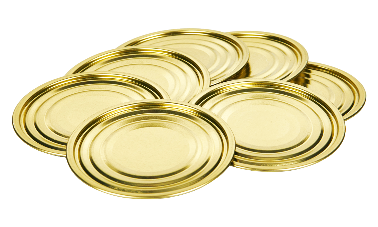Falzdeckel passend zu allen gängigen Konservendosen. Innen weiß, außen gold lackiert.
