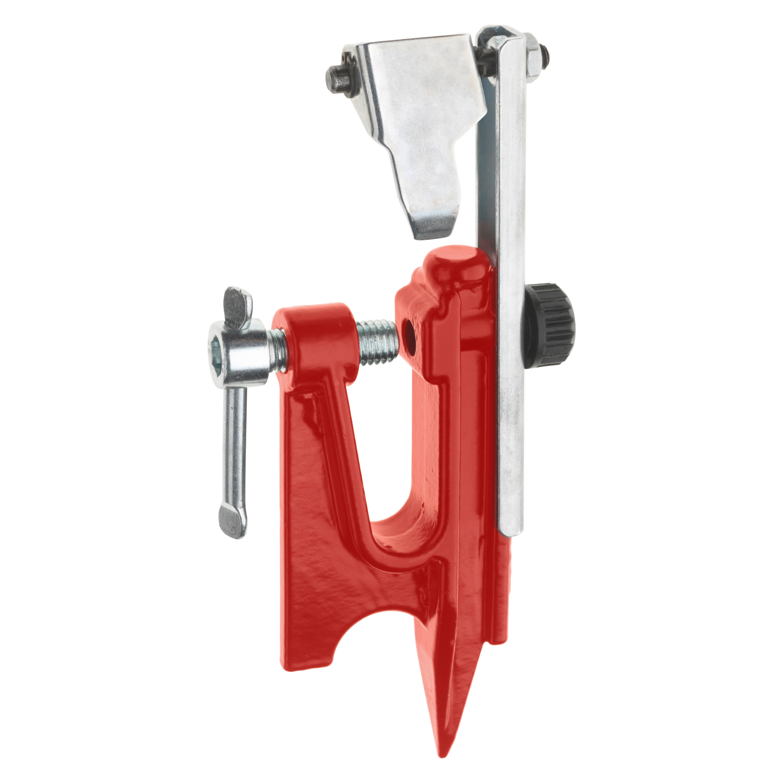 Feilbock mit AnschlagSägekettenanschlag für ein rascheres Schleifen, perfekter Halt,in einen Baumstumpf schlagen und die Führungsschiene mit dem Schraubstock fixieren.