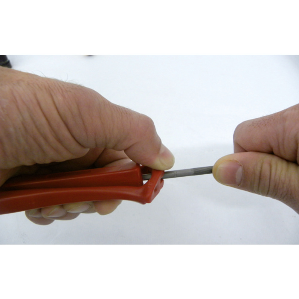 Einfache Klemmvorrichtung für festen Halt, einfach zu wechseln, für alle gängigen Größen, mit 25° und 30° Winkel an der Spitze (ohne Feile),. Länge 115 mm.