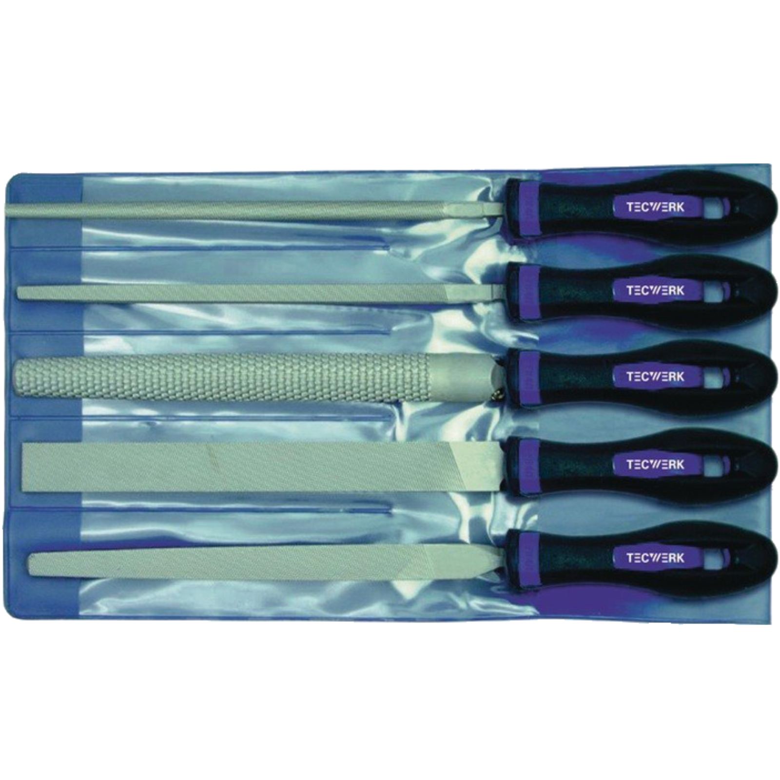 Feilen mit 200 mm Länge aus hochwertigem Stahl, in Kunststofftasche ·Inhalt: je 1 Stk. flachstumpf, halbrund, rund, dreikantfeile sowie eine Raspel halbrund.Alle versehen mit einem hochwertigen 2-Komponentengriff.