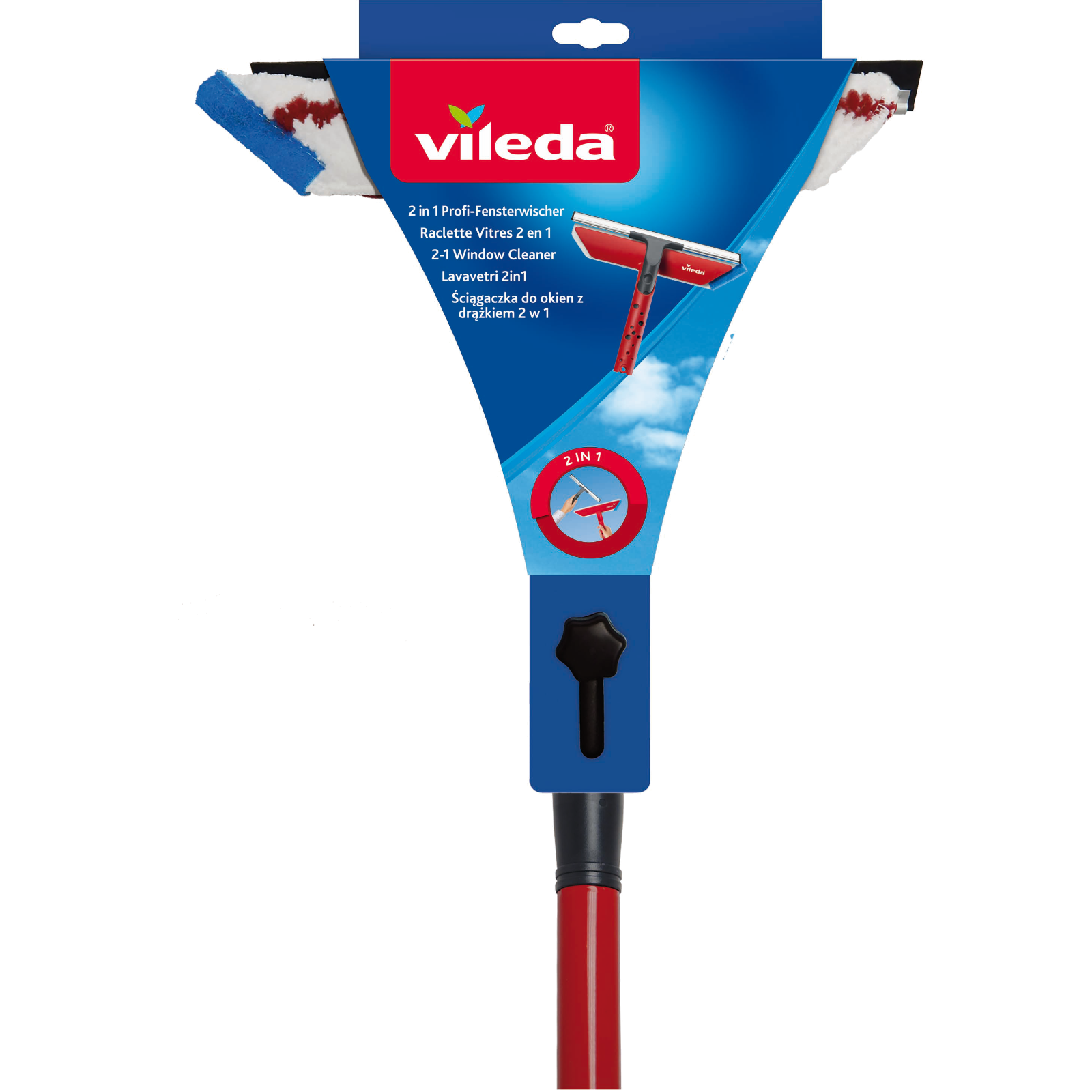 2in1 Einwascher und Abzieher: Der Profi-Fensterwischer mit Stiel von Vileda kombiniert Einwascher und Abzieher. So gelingt die Reinigung Ihrer Fenster noch schneller und bequemer.