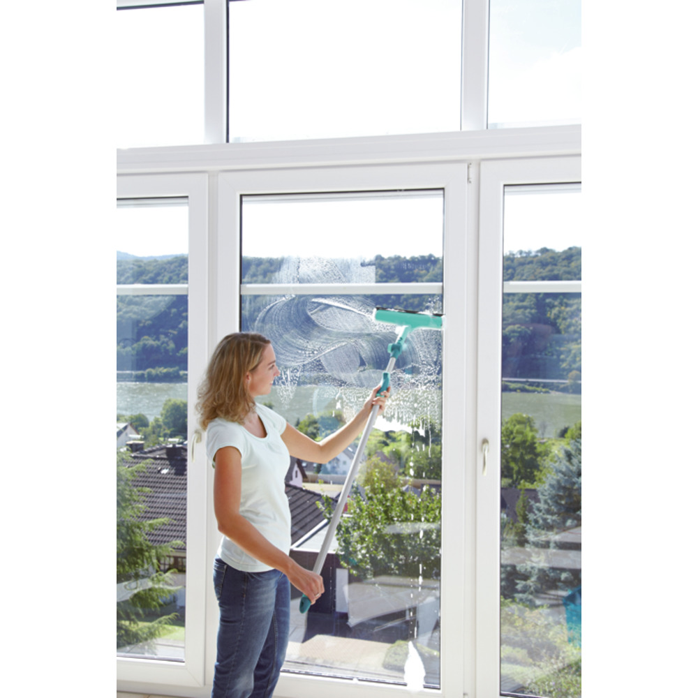 Der Fensterwischer ist mit einem Rundum-Bezug ausgestattet, der sowohl Rahmen als auch Scheiben in einem Schritt einwäscht. Kein lästiges Umschalten zwischen verschiedenen Reinigungsutensilien mehr!