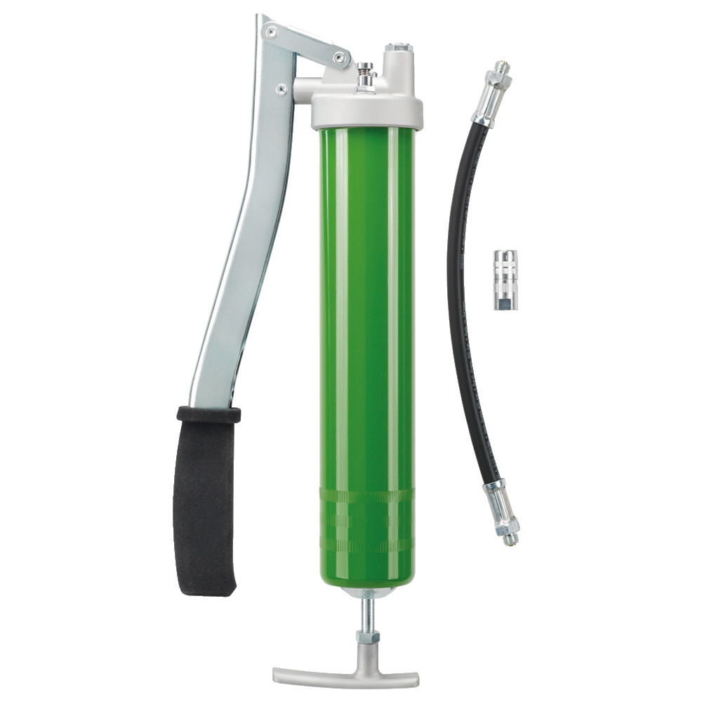 Inkl. Panzerschlauch und Rundkopfdüse. Füllmöglichkeiten 400 g Kartuschen oder loses Fett mittels Spachtel, demontierbares und bewegliches Schubstangensystem. Hohe Passgenauigkeit von Zylinder und Kolben, damit wird eine Scheinschmierung verhindert.