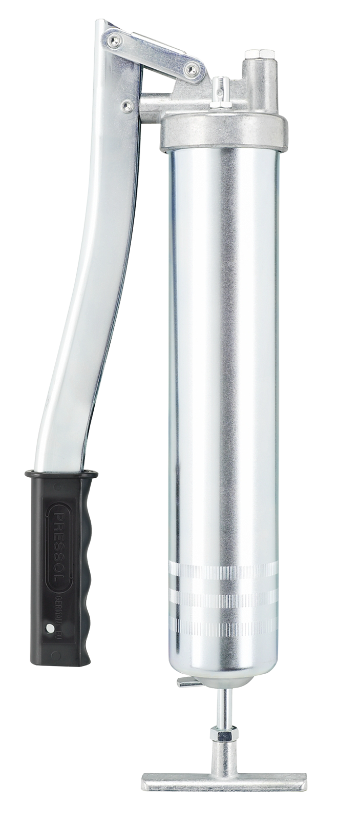 Profi-Ausführung, internationale Patente. Aus Zinkdruckguss in einem Stück gegossen. Fördert bei jedem Öffnungswinkel, Fördermenge 1,3 ccm, bei 400 bar. Die Vorteile: voll zerlegbar, d.h. problemlose Reinigung - Pumpenkolben und Zylinder von höchster Passgenauigkeit - Formmanschetten, d.h. dichter Sitz bei losem Fett und Kartuschen. Fettraum kann mit halber Drehung am Pumpenkopf entlüftet werden. Offener Griff - kein Einklemmen der Finger.