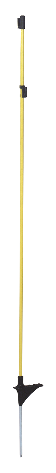 Hervorragend geeignet für die Rinder-, Pferde- und Schafhaltung. Geesamthöhe 152 cm. Ideal für Litzen, Draht und Bänder bis 20 mm. Farbe gelb. Inkl. Kopfisolator und höhenverstellbarem Zusatzisolator. Ø 10x8mm. Metall-Fußnagel 18 cm. 10er Pack