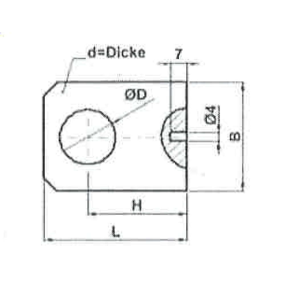 Zum Anschweißen an Hydraulikzylindern für eine starre Verbindung mit Bolzen oder Schrauben. Mit Zentrierbohrung für einen Spannstift von 4mm Durchmesser, damit die Befestigung genau in der Längsachse des Zylinder befestigt werden kann.
