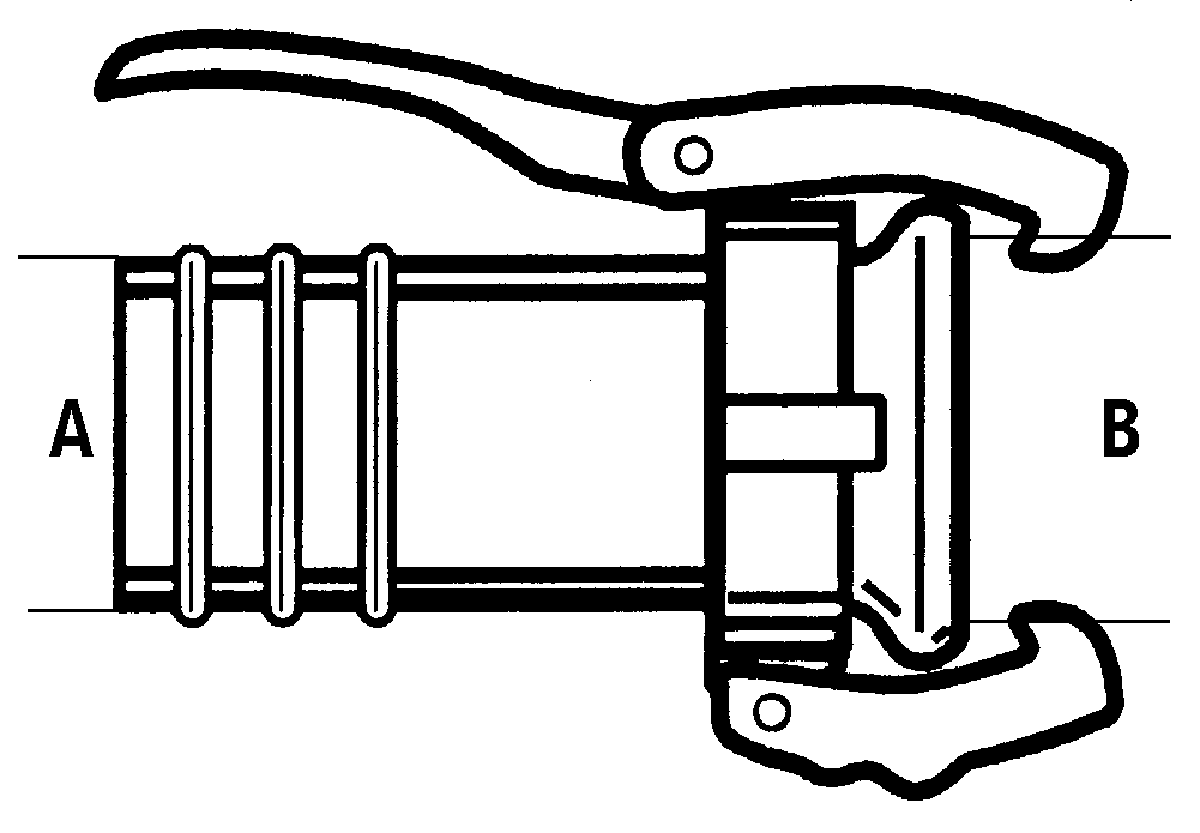 Flanschkupplung Becher mit Hebelverschlussring und Gummiring. Verzinkte Ausführung, Stutzenlänge 150 mm.Lochbild Flanschanschluss: 150 x 150 mm