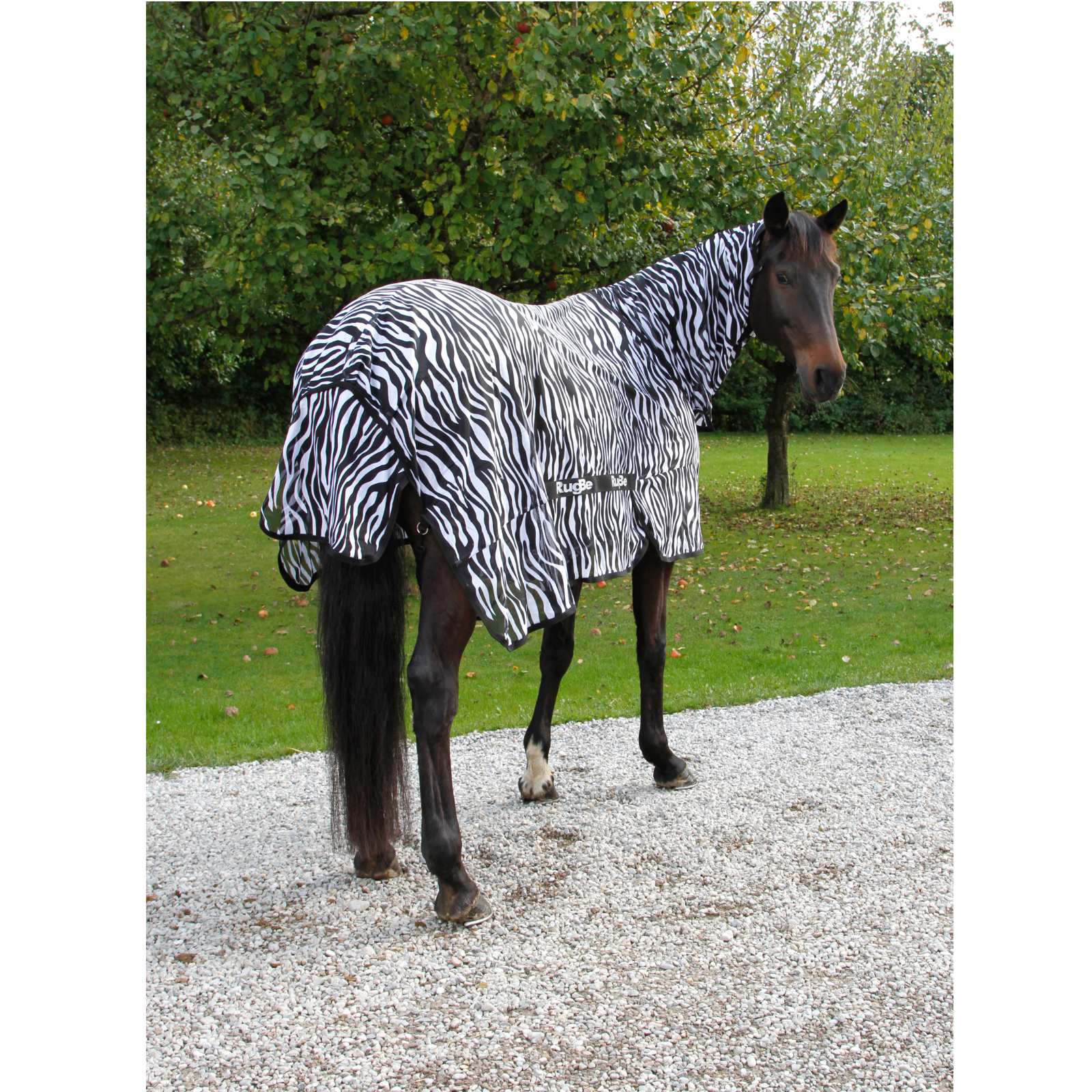 Fliegen- und Ekzemerdecke mit Halsteil. Der Zebra-Look bietet perfekten Schutz gegen lästige Fliegen, Stech- und Beißinsekten