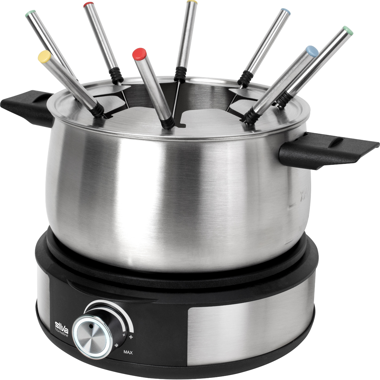 Das Fondue-Set mit 8 Gabeln ist ideal für gesellige Abende mit Familie und Freunden.Egal ob Käse-, Fleisch- oder Schokoladenfondue – dieses Set bietet vielseitigen Genuss für jeden Geschmack. Der Edelstahltopf sorgt für eine gleichmäßige Wärmeverteilung, während die 8 farblich markierten Gabeln individuelle Portionen ermöglichen.Dank der rutschfesten Basis steht das Gerät stabil auf dem Tisch.Die einfache Handhabung und Reinigung machen dieses Fondue-Set zum perfekten Begleiter für gemütliche Abende.