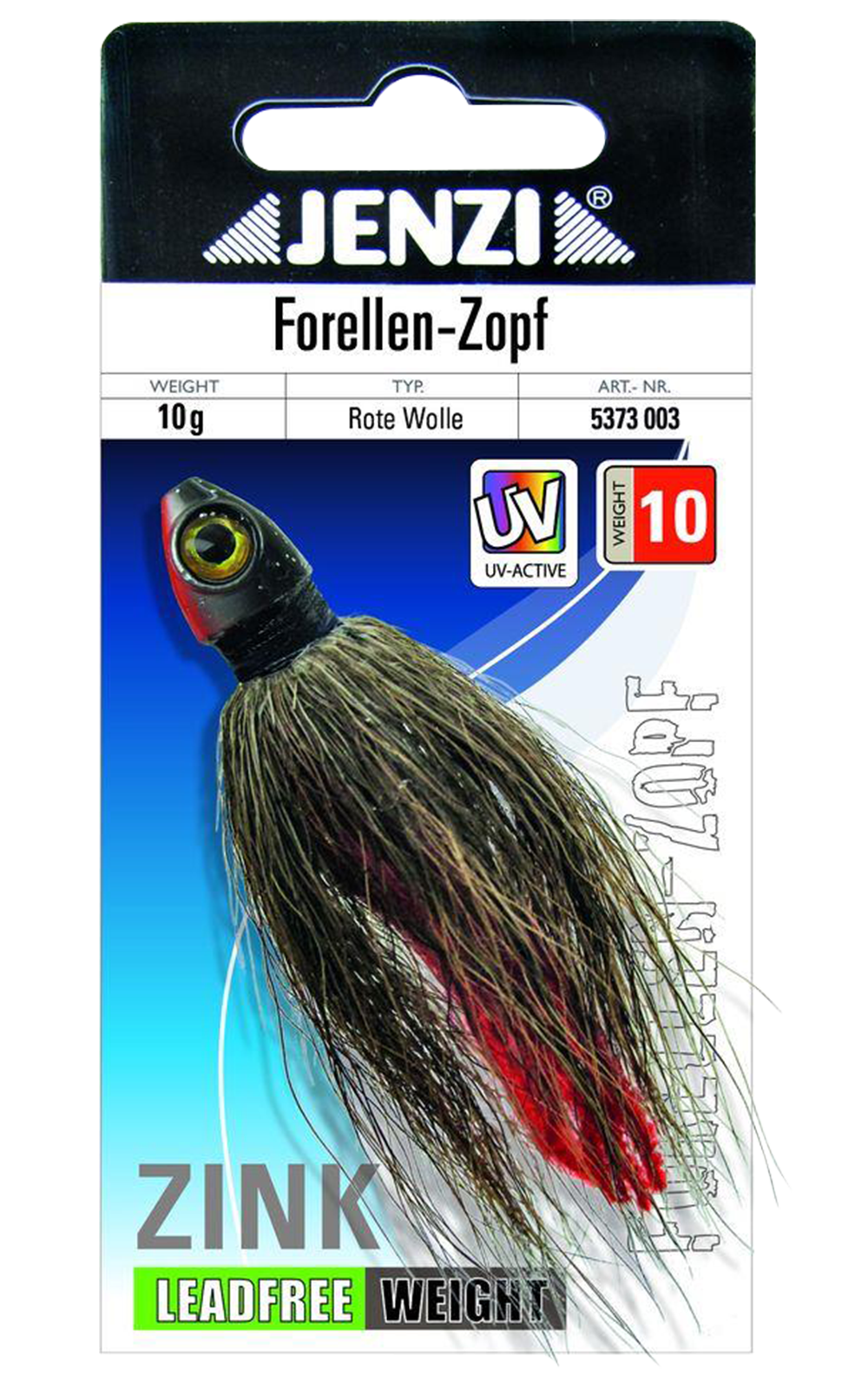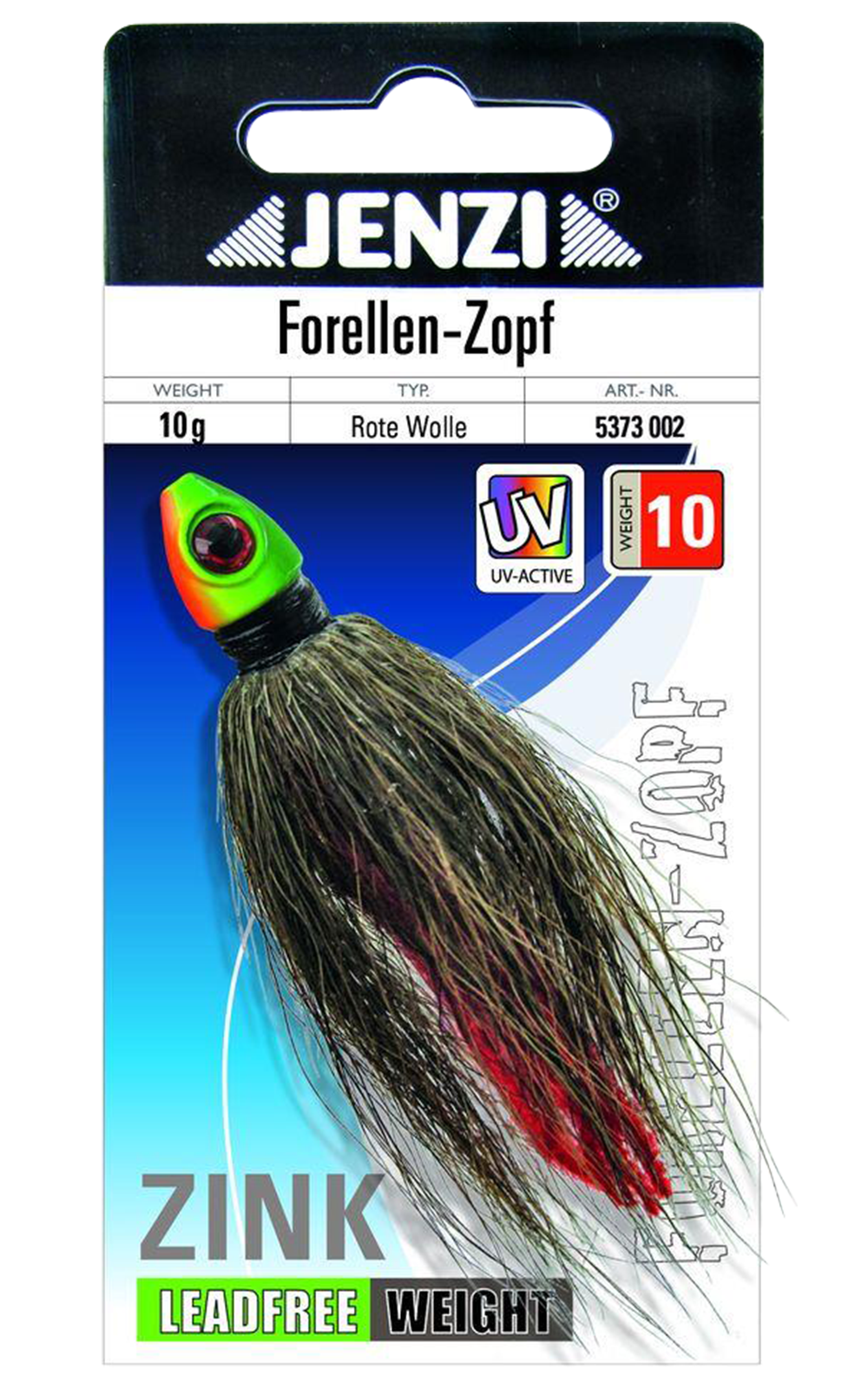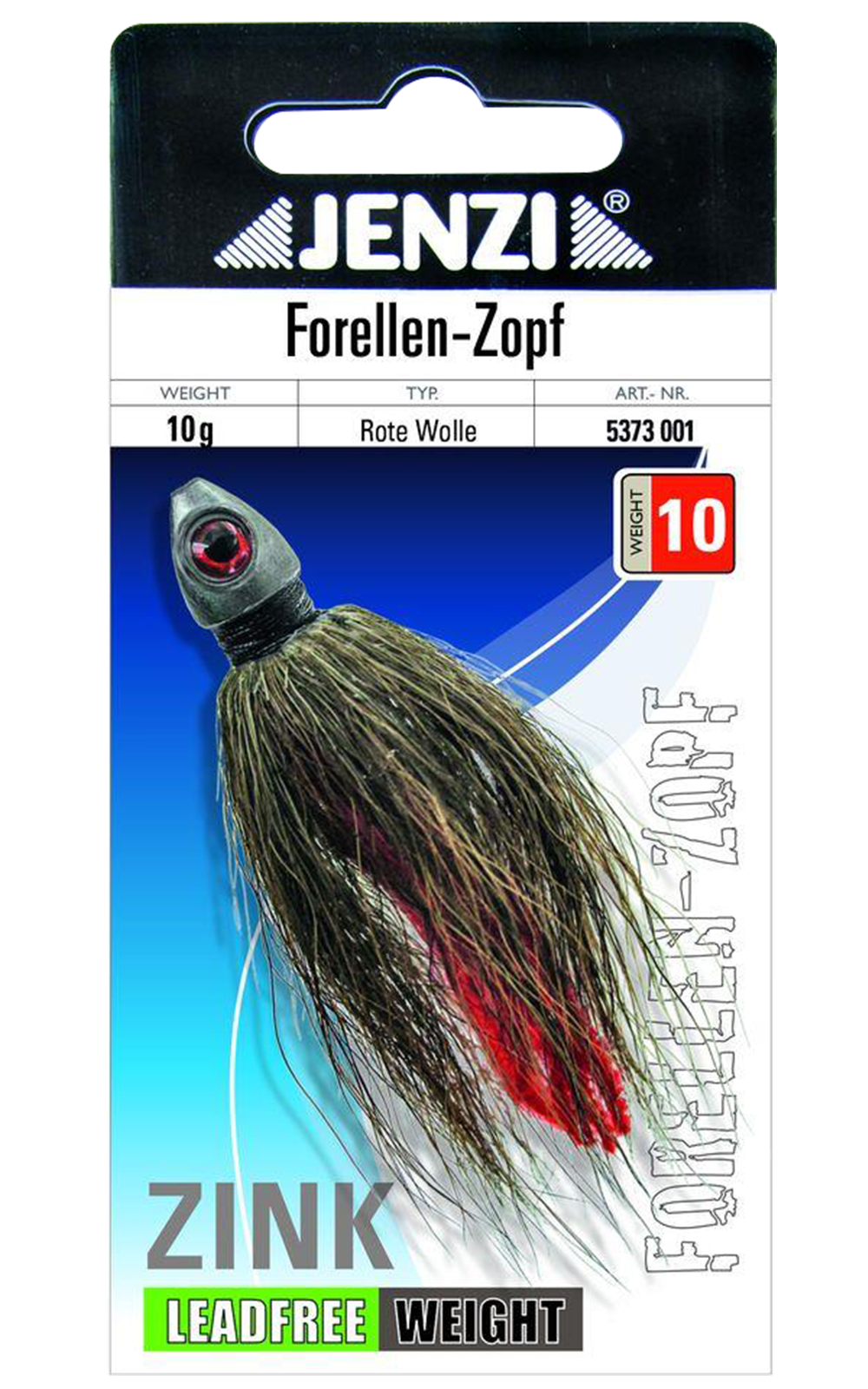 Forellen-Zopf – Tradition trifft Handwerk, ein Klassiker der Fische verführtGefertigt aus hochwertigem Zink – ganz ohne Blei.Diese altbewährte Spezialität eignet sich perfekt zum Fang von Forellen in klaren Gebirgsbächen und Seen.Der Zopf wird von Hand gebunden, mit feinem Rehhaar und einem roten Wollstreifen für extra Lockwirkung.Auch für Raubfische wie Hecht ist dieser Köder bestens geeignet.Ein integriertes Fischauge im Kopf sorgt für zusätzlichen Reiz unter Wasser.Erhältlich in drei Farben.Den passenden Haken wählen und montieren Sie selbst – so passt der Köder genau zu Ihrer Angelmethode.Einzelgewicht: 10 g