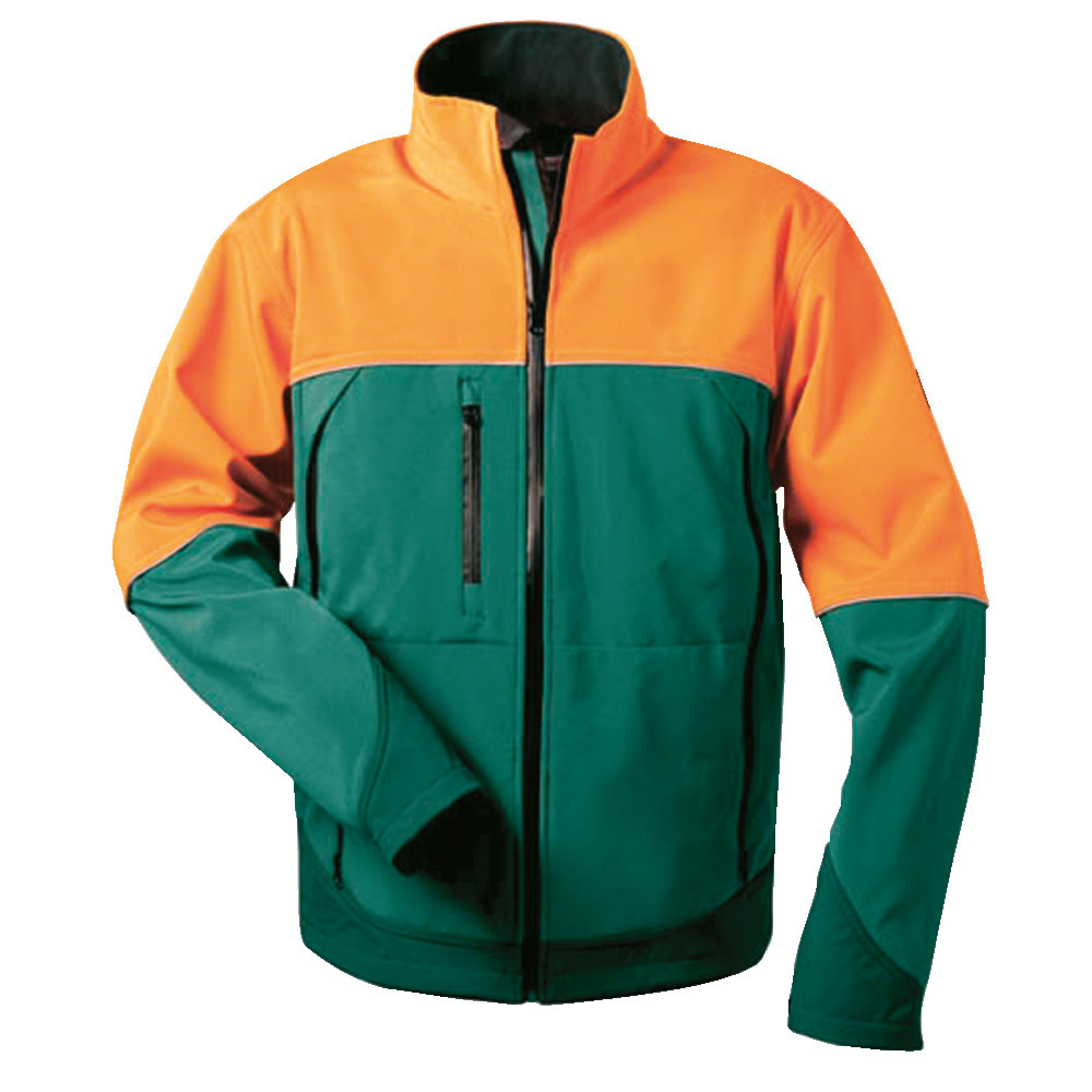 100% Polyester, grün/orange. Material ist wind- und wasserdicht, hoch atmungsaktiv durch 3-Lagenlaminat, alle Reißverschlüsse wasserdicht, angenehm zu tragen durch Fleeceinnenfutter,2 Außentaschen, 1 Brusttasche, 2 Innentaschen. Größen: S - XXL.