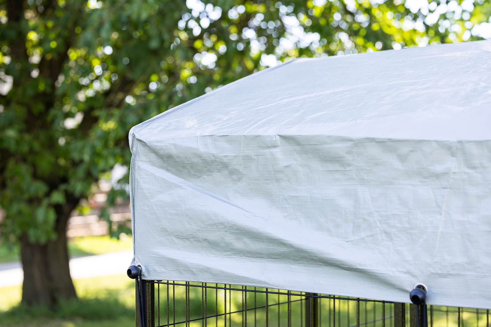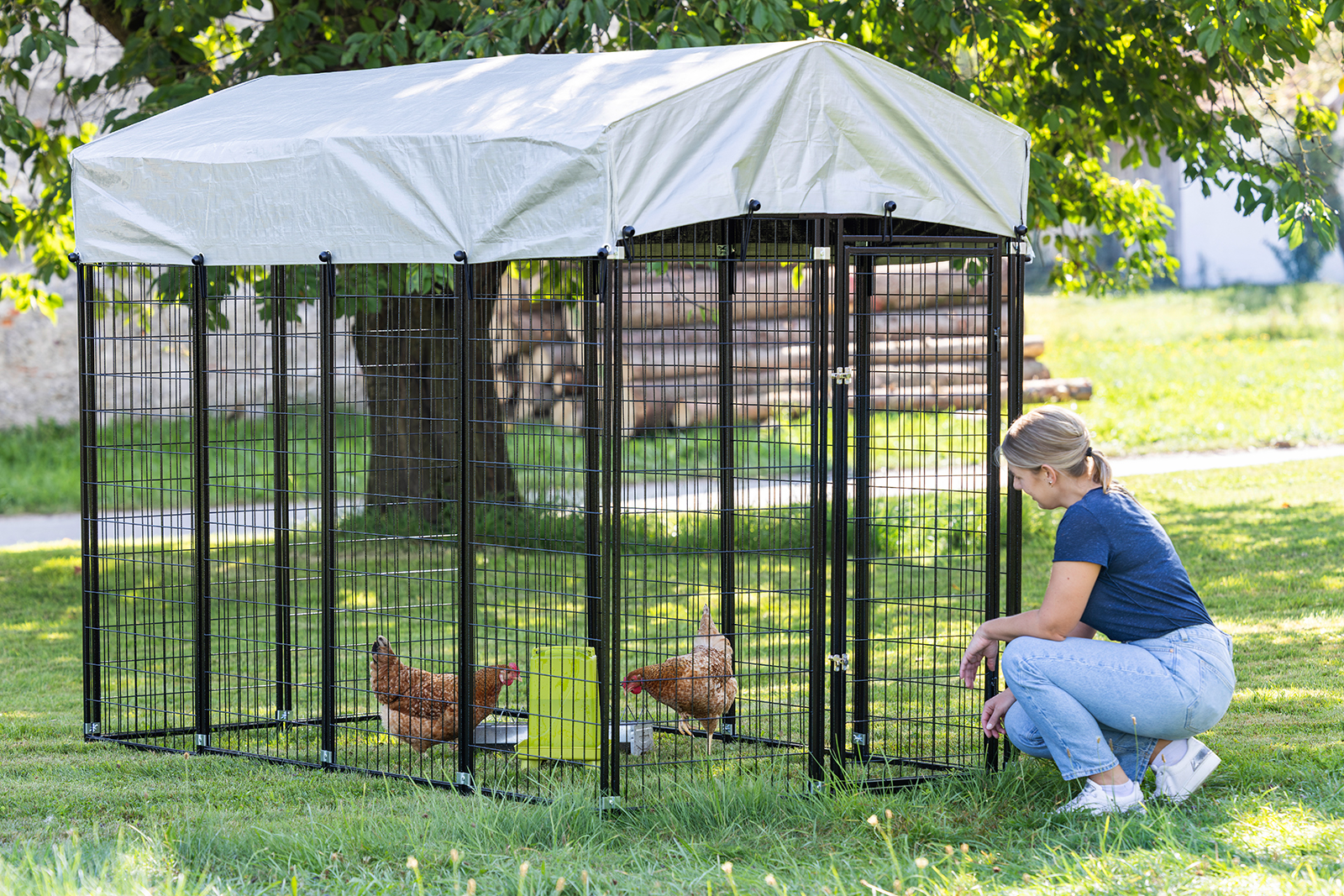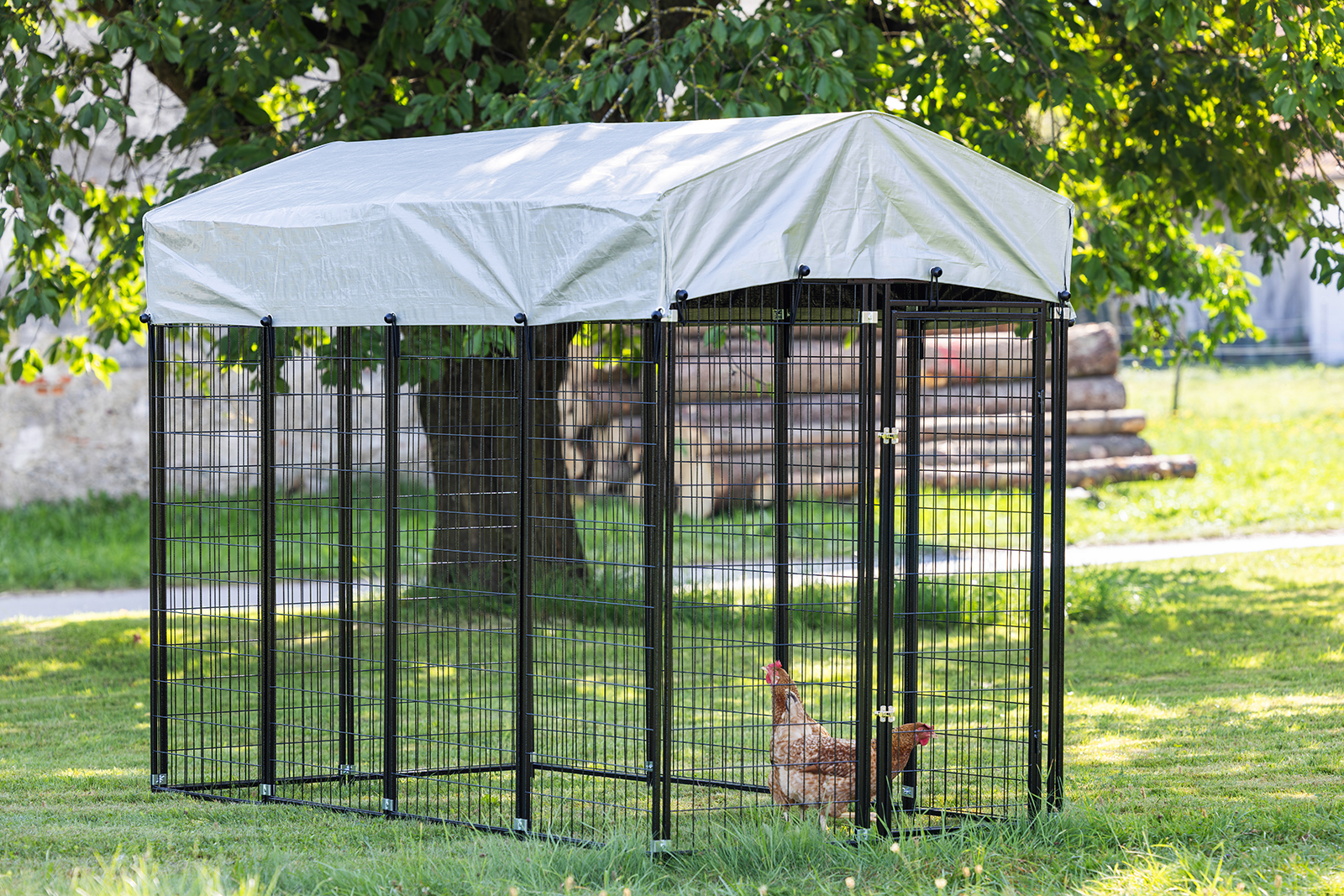 - komplette Überdachung des Geheges sorgt für ausreichend Schatten und Schutz vor Regen