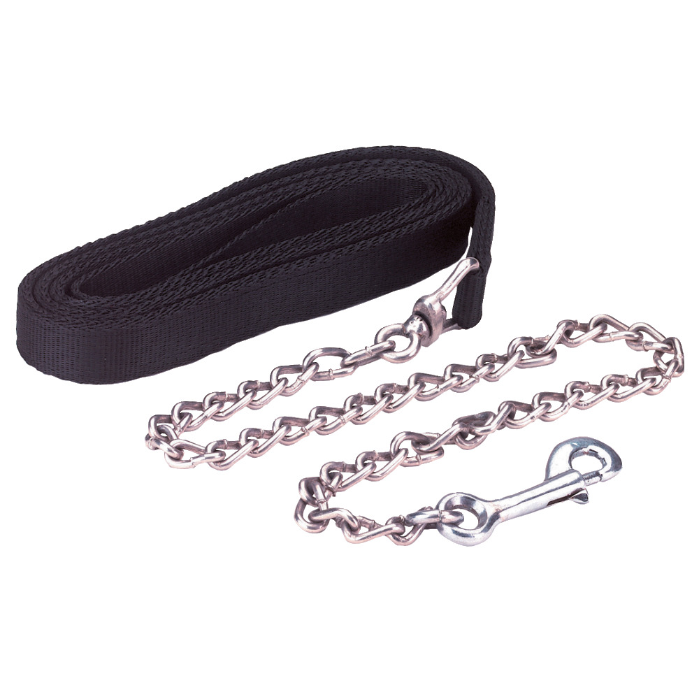 Hervorragend verarbeiteter Führstrick, doppelt vernäht; Länge 2,50 mFarbe: schwarzKettenteil: 50 cm