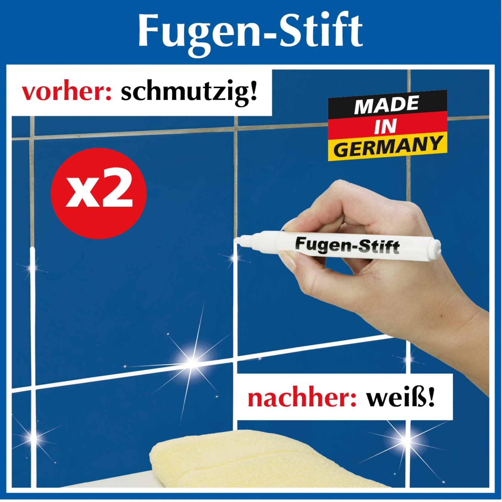 Strahlend saubere Fugen - bequeme und einfache HandhabungMit dem Stift einfach die dunklen Fugen nachzeichnenmade in GermanyInhalt: 2 Stück
