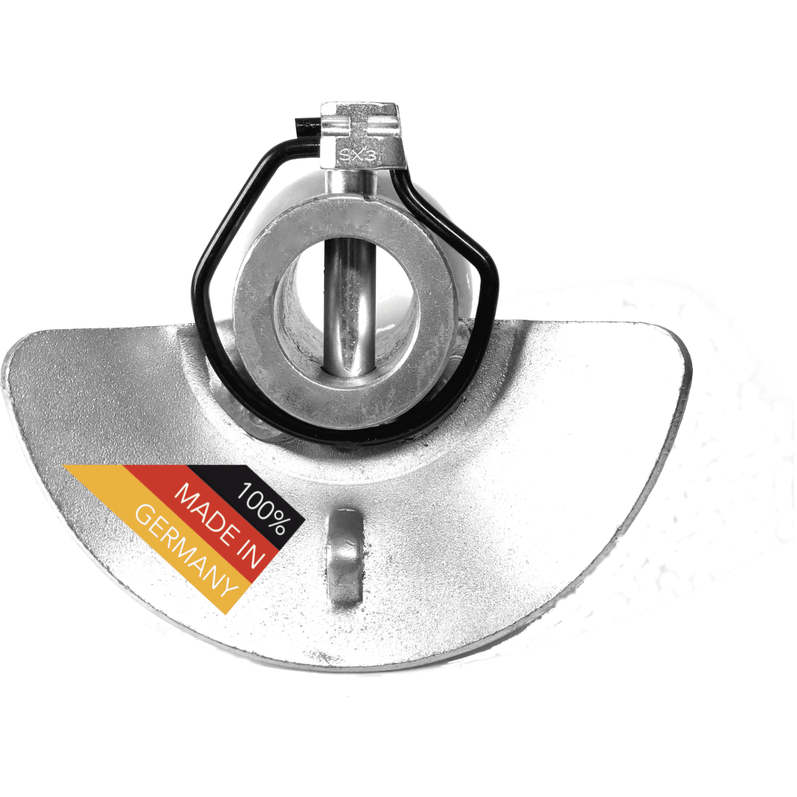 WELTNEUHEIT - Der erste und einzige Sicherheitsklappstecker für Kugelfangschalen!Der SX3 KFS für KAT.2 und 2/3 Funktions-Klappsplint mit 3-facher Sicherheit dient alsSicherungselement (Bolzensicherung) im Maschinen- und Fahrzeugbau.Dieser Sicherheitsklappsplint vereint drei entscheidende und dauerhaft gleichbleibendeSicherheits-Funktionen in seinem Bolzenkopf.Durch die patentierte Bolzenkopf-/Federring-Konstruktion wird der Federring im geöffnetenund im geschlossenen Zustand in der Nut des Bolzenkopfes gehalten. In der Offenstellung istein ungewolltes nach hinten oder nach vorne Klappen ausgeschlossen. Im geschlossenenZustand ist nur ein vom Anwender gewolltes Öffnen möglich. Maße: 11,5x52mmDaraus ergeben sich drei wesentliche Vorteile für jeden Anwender:--> kein selbsttätiges Öffnen--> kein selbsttätiges Schließen--> kein Verlieren des Klappsplints