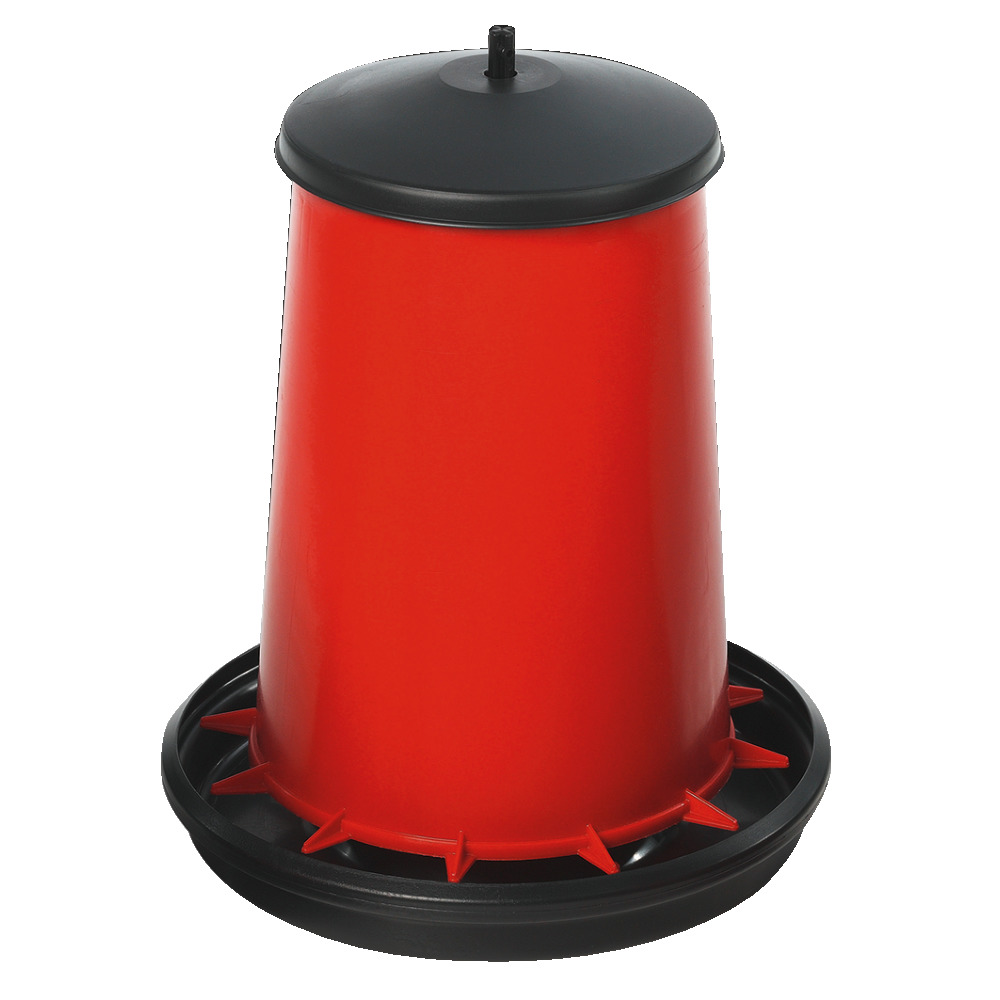 Stabiler Kunststofffutterautomat mit Deckel, bei dem eine stufenlose Futterhöheneinstellung möglich ist. Auch zum Aufhängen geeignet! Der abgerundete Tellerrand verringert die Futterverschwendung. Lieferung OHNE Standfüße (separat erhältlich!).