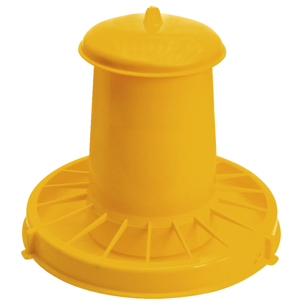 Futterautomat aus gelbem, lebensmittelechten Kunststoff.Wird unmontiert geliefert!