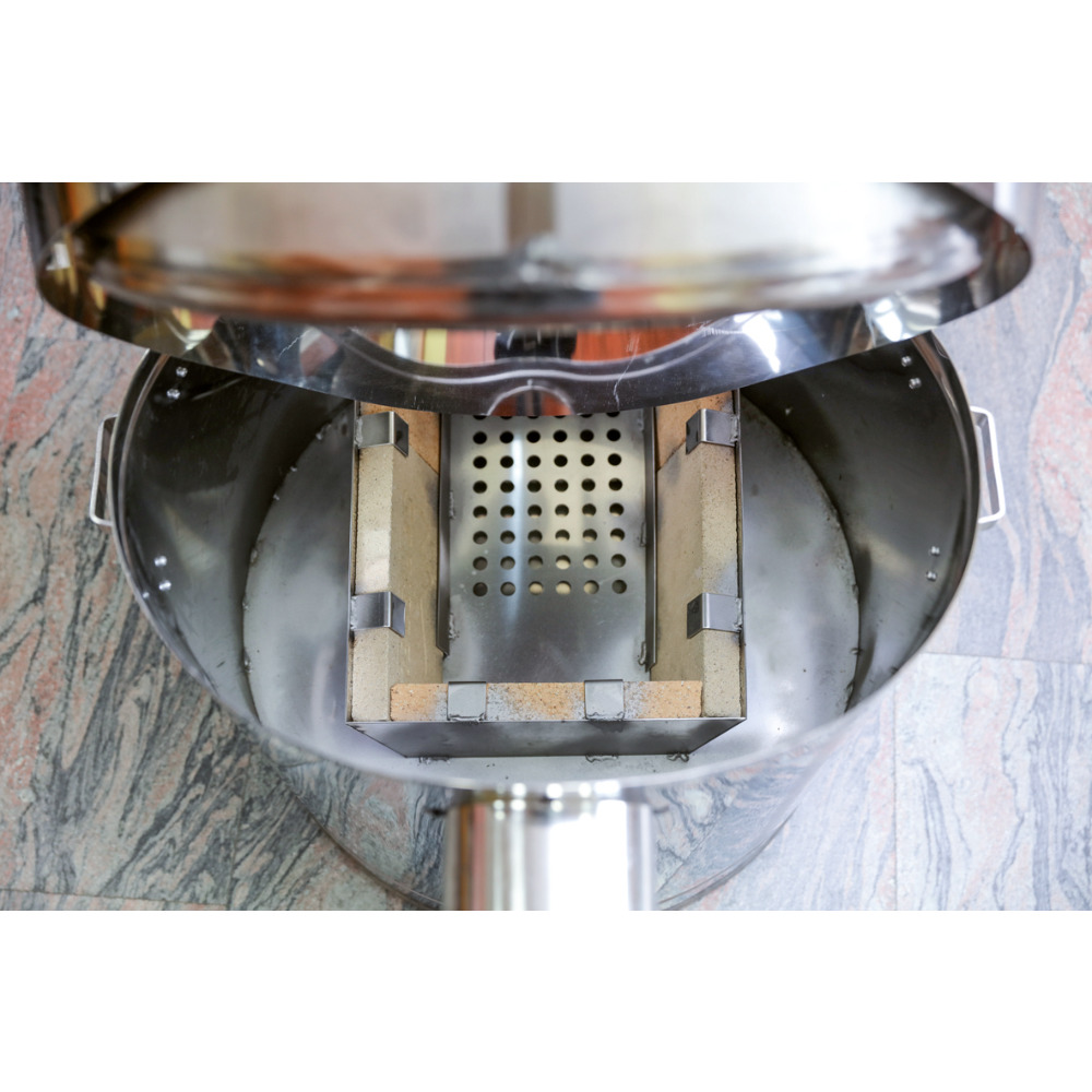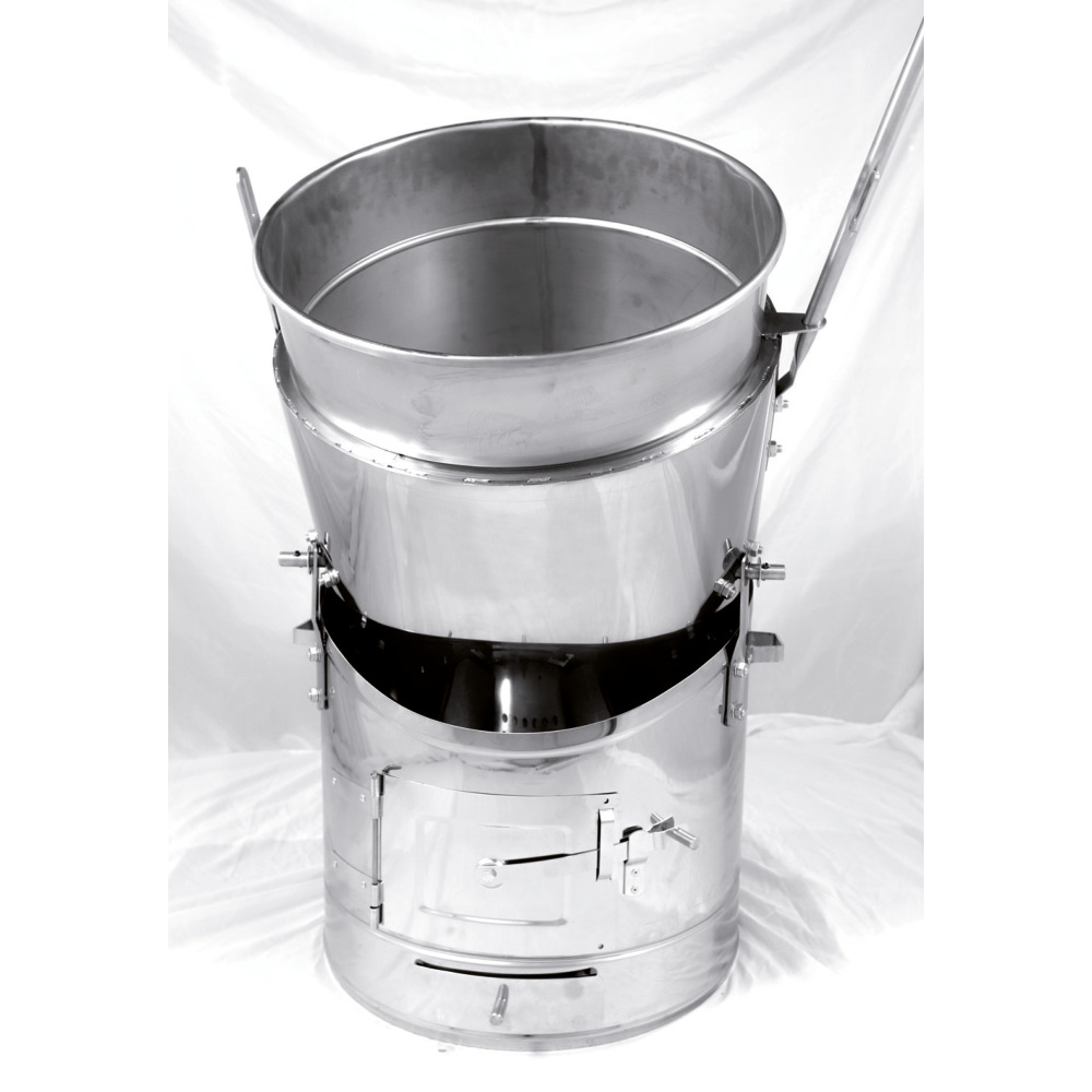 Hochwertiger Futterdämpfer mit Schamotteinsatz SAUGUT by FAIE. Hergestellt in Europa aus hochwertigem Edelstahl AISI 430, dadurch extrem lange Lebensdauer.Ein Dämpfer für Generationen! Kippbarer Kessel aus Edelstahl - für vielfältigsten Einsatz und größtmögliche Hygiene. Der Kessel verfügt über eine große Feuerstelle mit großzügiger Schamott-Auskleidung, diese garantiert Ihnen die perfekte Nutzung des Brennmaterials, eine optimale Nutzung der Wärme und eine sehr gute Hitzespeicherung.Technische Daten:Kesselvolumen: ca.120 LiterL x B x H: 80 x 81 x 125 cmRauchrohranschluss: 120 mmEigengewicht: 52 kgDämpfzeit: ca. 100 MinutenFüllmenge: ca. 80 kg (Kartoffel)Kesseldurchmesser außen: 60 cmKesseldurchmesser innen: 56,5 cmKesselhöhe innen: 44,5 cm