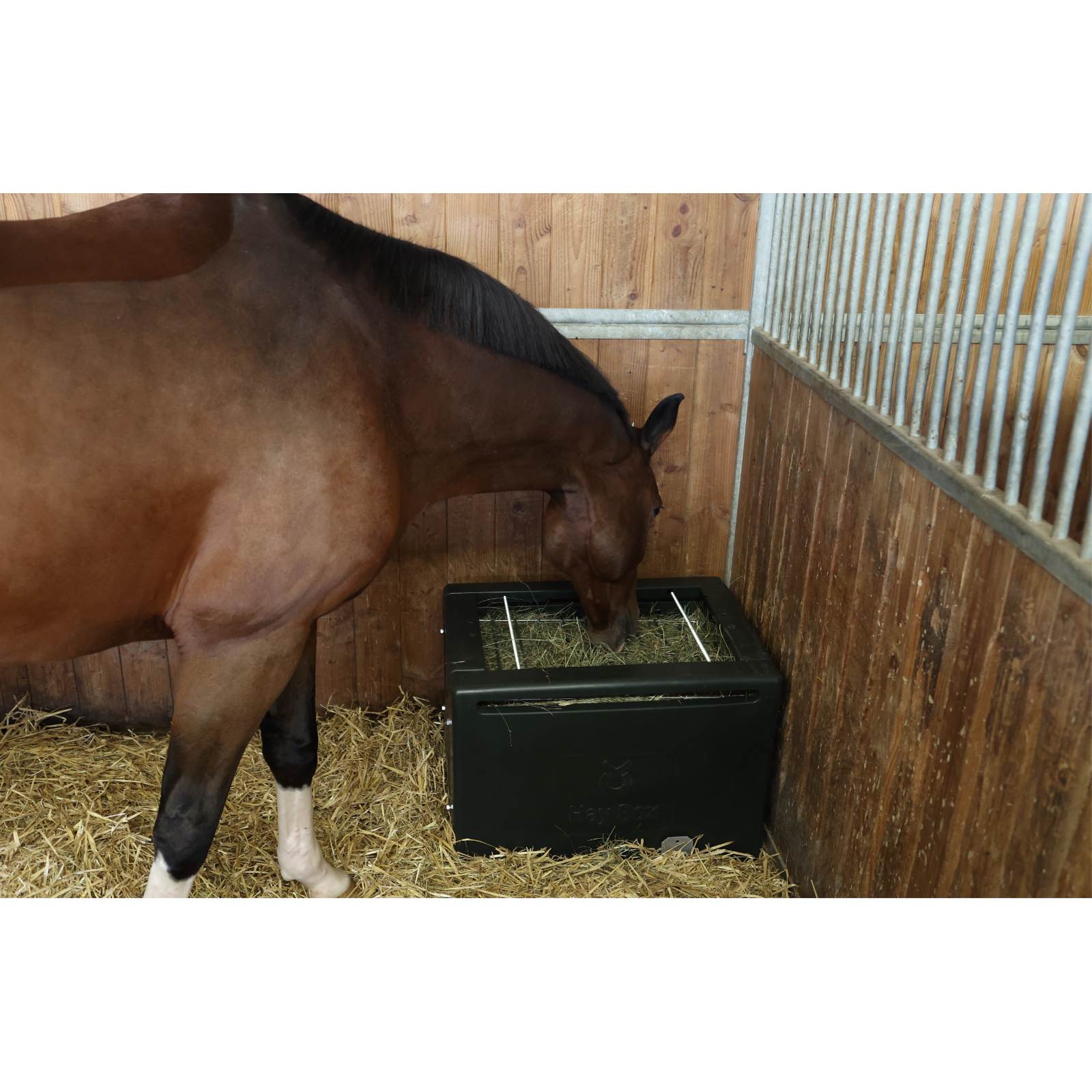 Die Heubox als HDPE für die artgerechte Fütterung von Pferden.Die Futteraufnahme erfolgt langsam aber stetig und kann so zum Wohlbefinden des Pferdes beitragen.