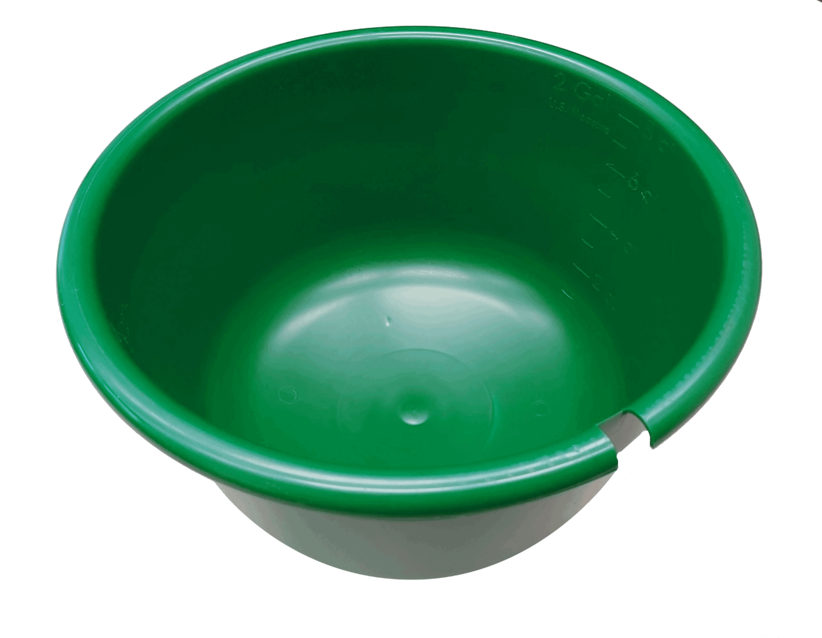 Universelle Futter- und Tränkeschale aus stabilem Kunststoff. Oben mit Aussparung für Haltebügel. Boden mit Standring. Innen mit geprägter Skala. Ø 31,5 cm, Höhe 18,5 cm. Fassungsvermögen 8 Liter. Farbe laubgrün.