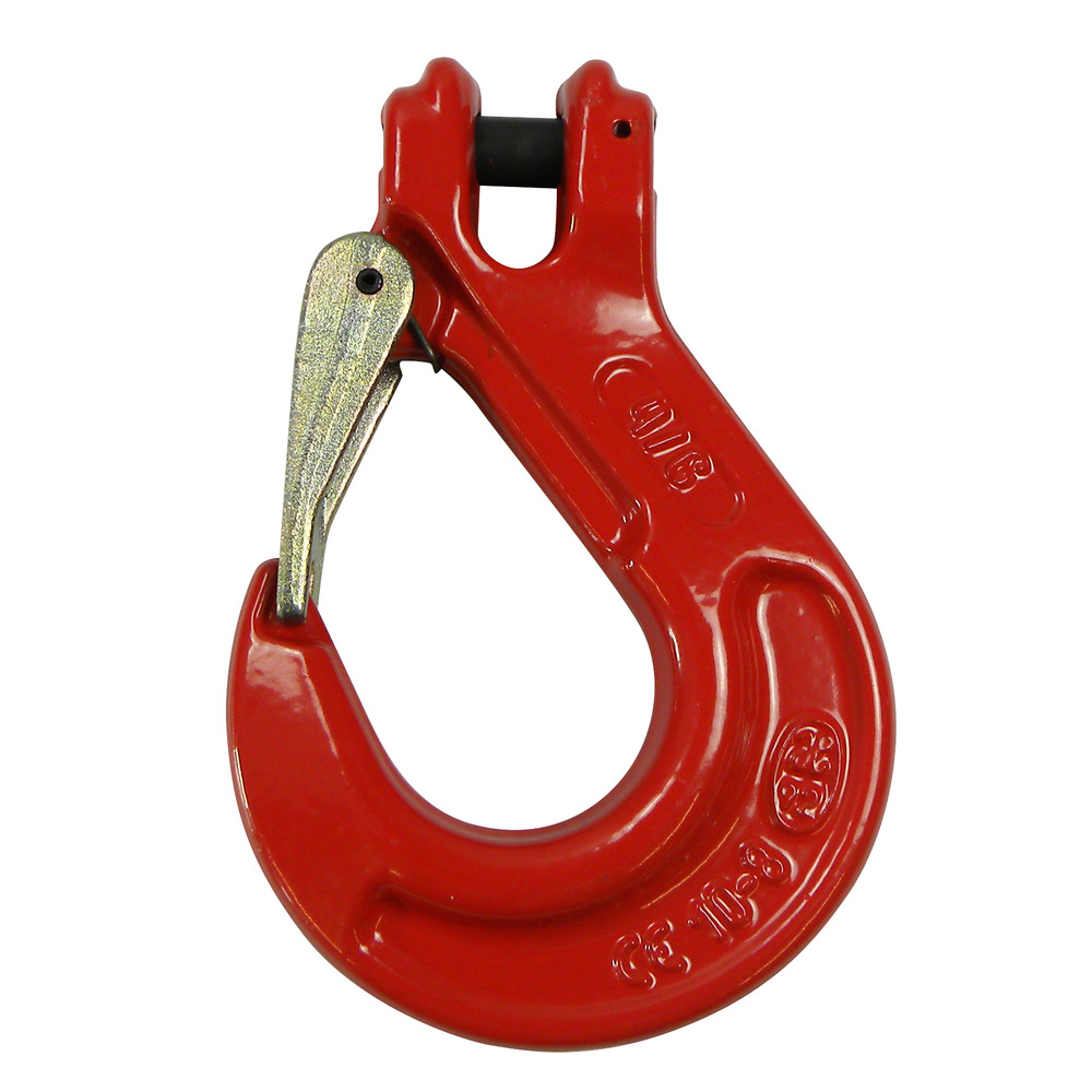 hochfester Lasthaken mit geschmiedeter Hakensicherung / Sicherungsfalle.Aufnahme zur direkten Befestigung an der Kette.