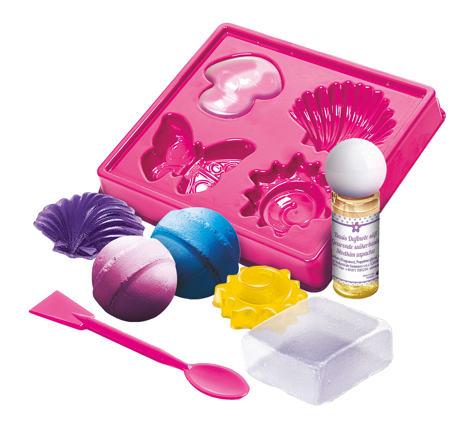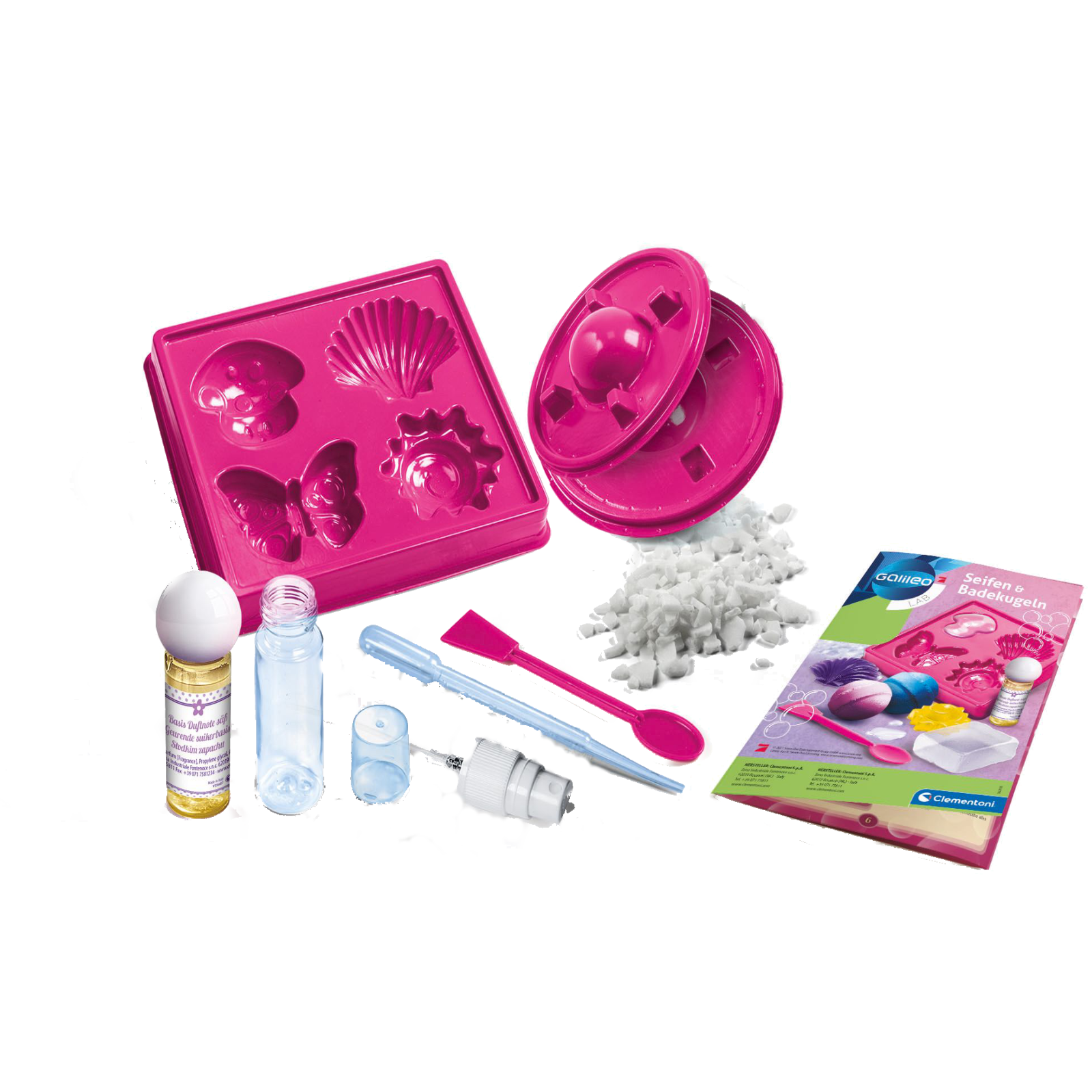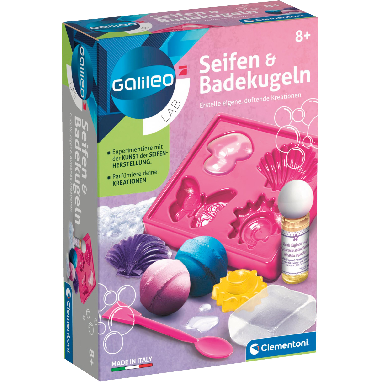 Woraus wird Seife gemacht? Wie wird ihr ein angenehmer Duft verliehen? Die Antwort auf diese und weitere Fragen werden mit diesem spannenden Experimentierset entdeckt. Kreiere deine eigenen Seifen und Badezusätze, um sie gleich auszuprobieren.Blubbernder Badespaß: Mit diesem Set lernt man alles über die Geheimnisse der Seifenherstellung und erkundet die Wissenschaft, die hinter sprudelnden Badebomben und schäumenden Seifen steckt!All in one: Das Experimentierset enthält alles, was es braucht, um schön duftende Badezusätze herzustellen – mit der Grundmasse, Duftöl, Pipette, Formen und Spachtel entdeckt Ihr Kind spielend die Welt der NaturwissenschaftLieferumfang: 1 x Galileo Science Seifen und Badekugeln, Wissenschaft für Kinder ab 8 Jahren von ClementoniDas Beauty-Labor für Zuhause: Mit diesem Baukasten gelingen Jungen und Mädchen Duschartikel der Extraklasse, mit frischem Duft und coolen Formen für aufregende Badeerlebnisse und saubere Hände.Ein Kinderspiel: Das illustrierte Handbuch hilft Ihrem Kind durch die verschiedenen Experimentierstufen, in denen nach und nach die Geheimnisse der Chemie und der Reaktionen mit Salzen entdeckt werdenInhalt: Basis Duftnote süß, Form für Badekugel, Spatel, Sprühflakon, Gießformen, Seifenbasis, Pipette, bebilderte AnleitungBasis Duftnote SüßParfumPropylene GlycolAquaalpha-isomethyl ionone [1]Anise Alcohol [1]Benzyl alcohol [1]Benzylbenzoat [1]Benzyl Salicylate [1]citronellal [1]Cumarin [1]Geraniol [1]Limonen [1]Linalool [1]Hexamethylindanopyran [1]Enthält Duftstoffe, die Allergien auslösen können.SeifenbasisGlyceryl Monostearate