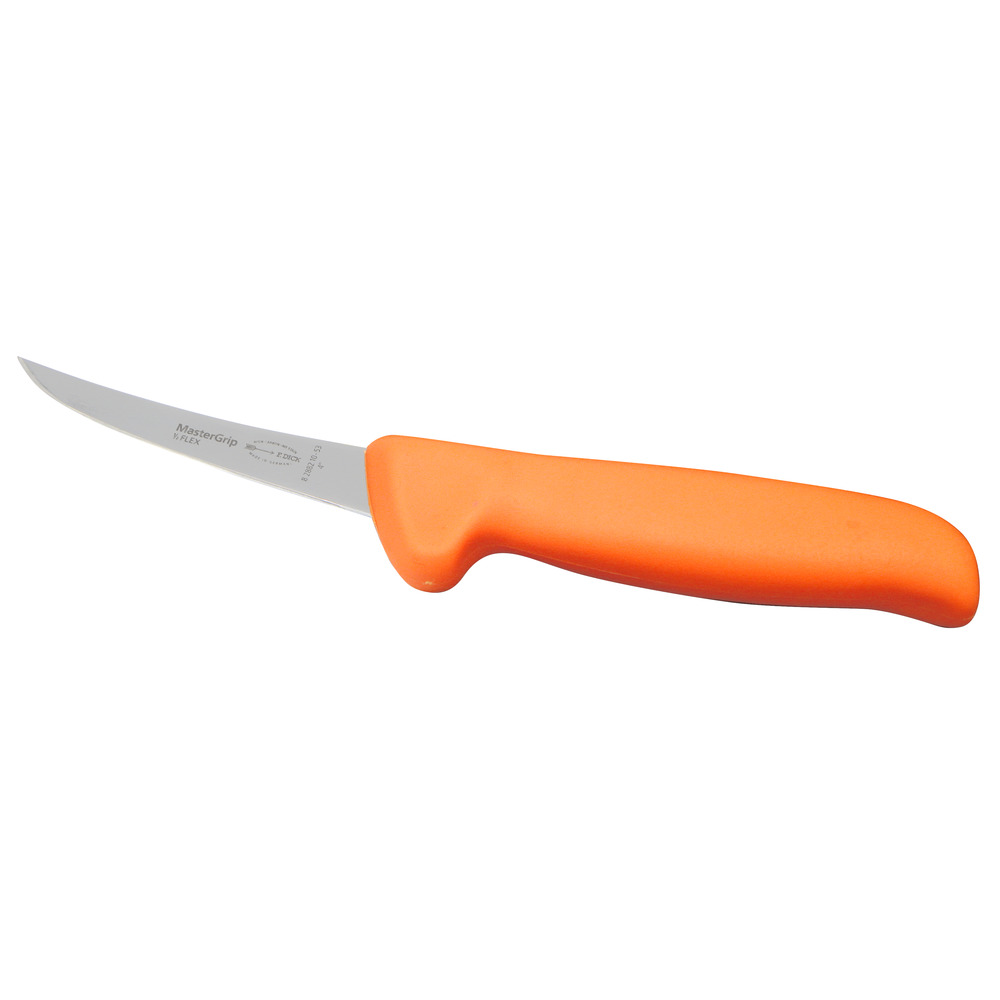 Handliches, kleines und geschweiftes semi-flexibles Ausbeinmesser. Grifffarbe Orange. Ideal für die Geflügel- und Kleintierschlachtung.