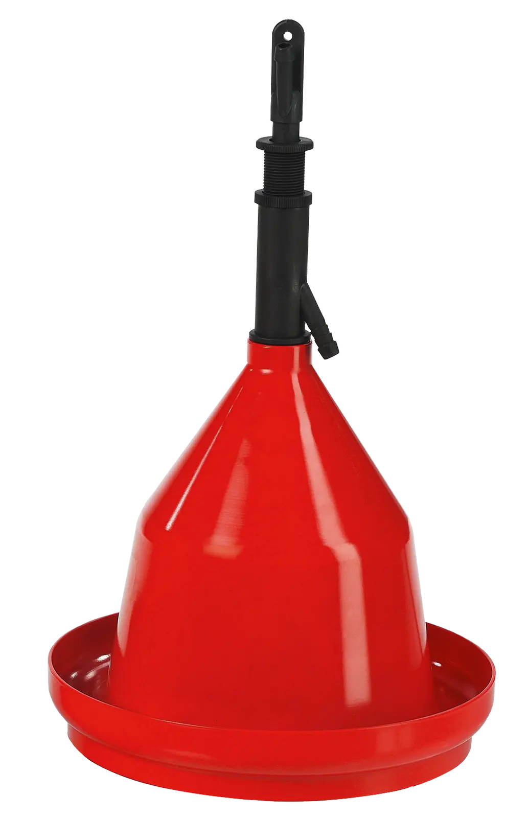 Hängetränke aus Kunststoff für Niederdruckleitungen (bis 0,5 bar). Automatische Wasserbefüllung mit regelbarer Füllhöhe. Geeignet zur Kükenaufzucht, Hähnchenmast, Legehennen- und Geflügelhaltung. Ø 32 cm