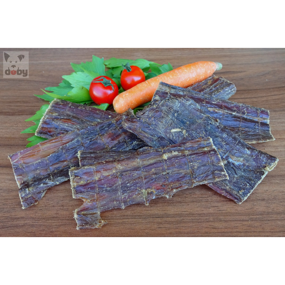 Schmackhafter Hunde-Kausnack aus reinem getrockneten Rinderfleisch.